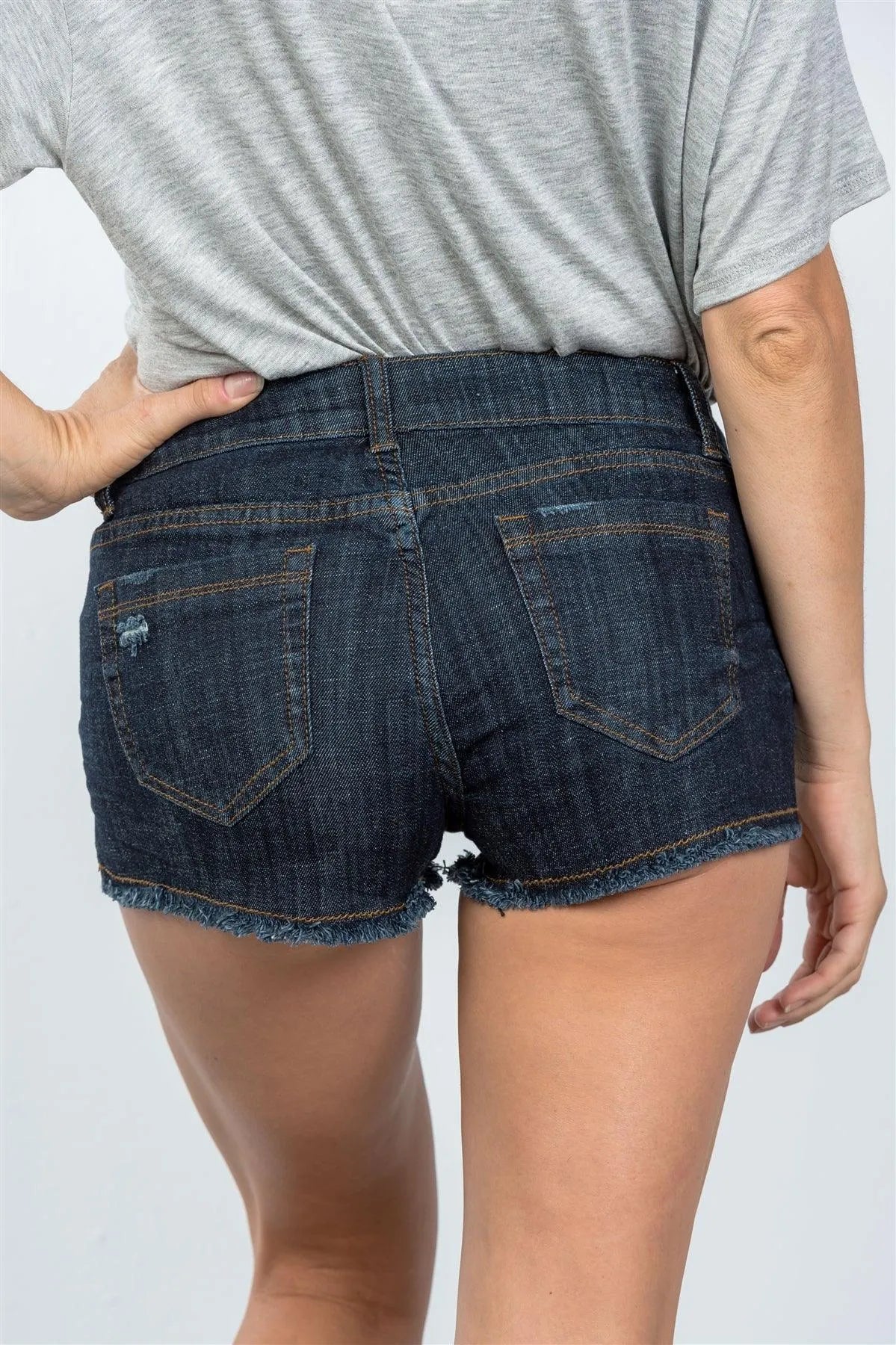 Blue Distressed Frayed Hem Soft Cotton Denim ShortsVendor:Litz La