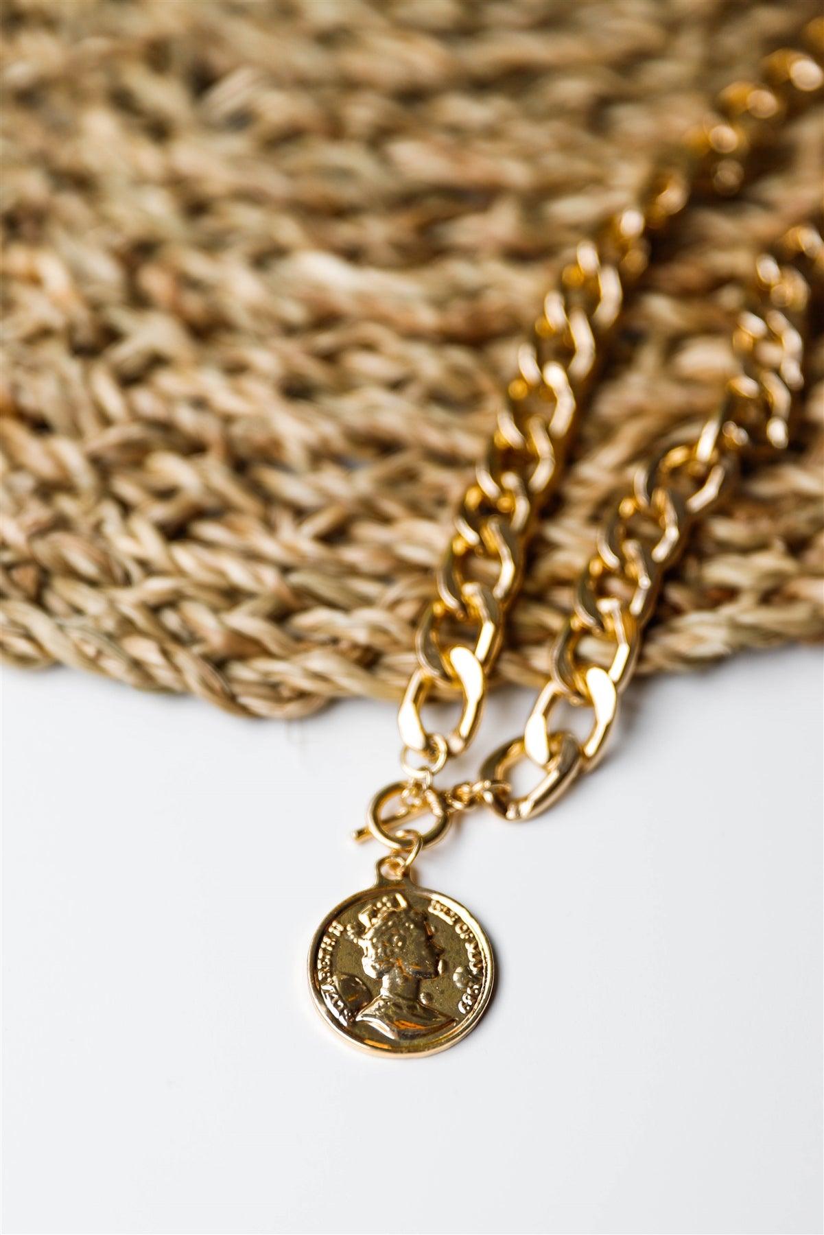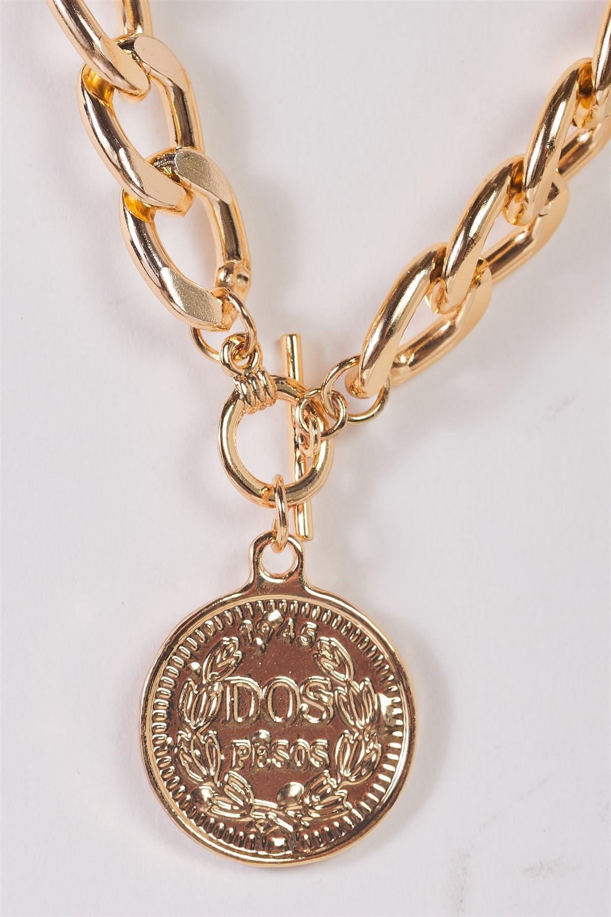 "Dos Pesos" Gold Chunky Link Chain Coin Pendant Necklace