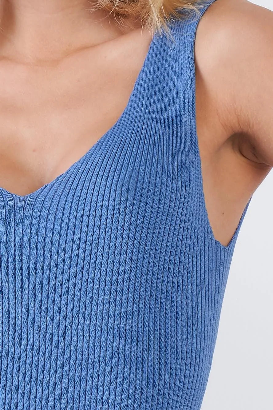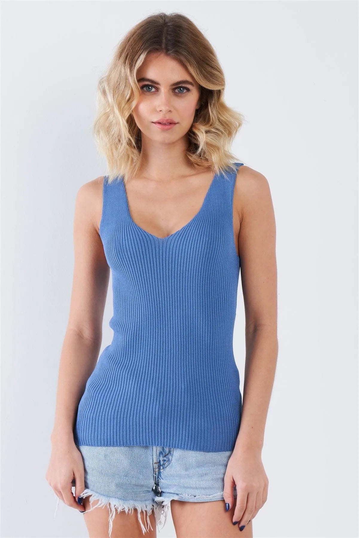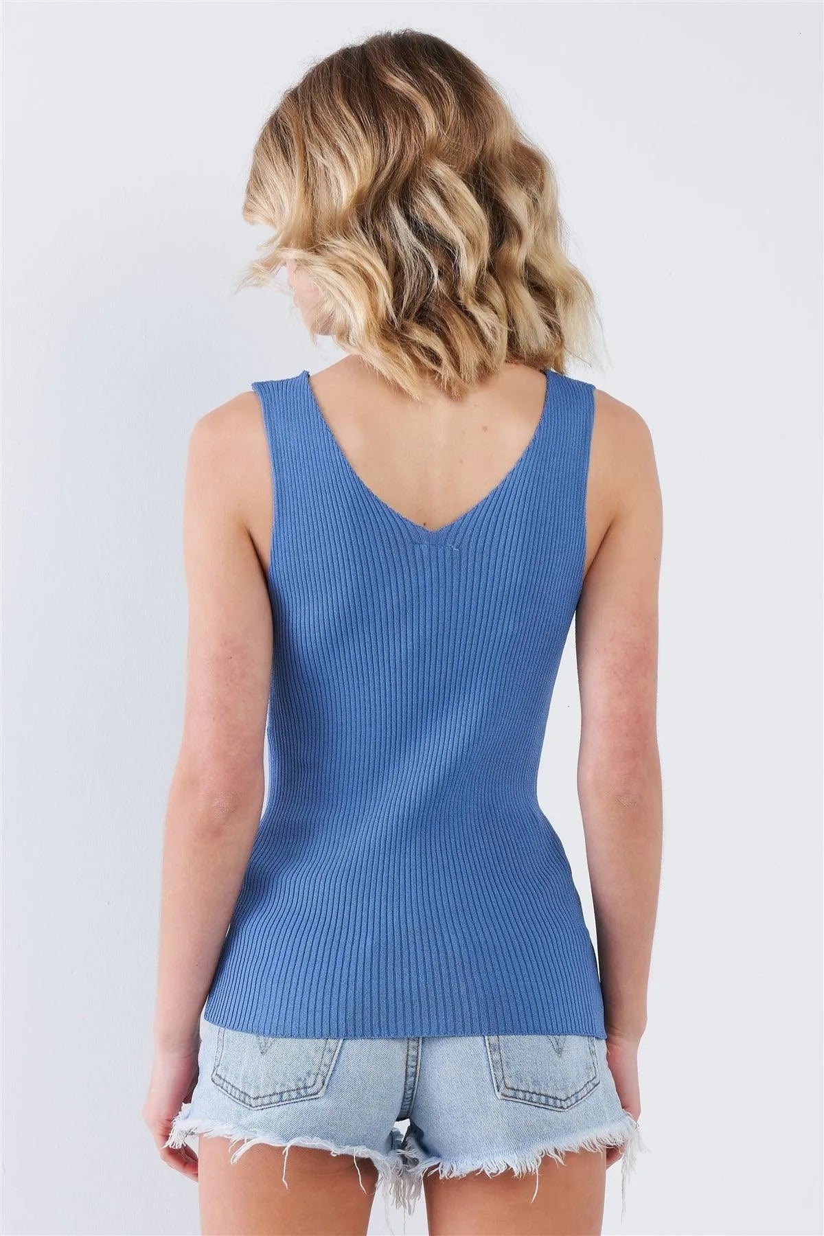 Dusty Blue Ribbed V-Neck Tank Top /2-2-1