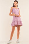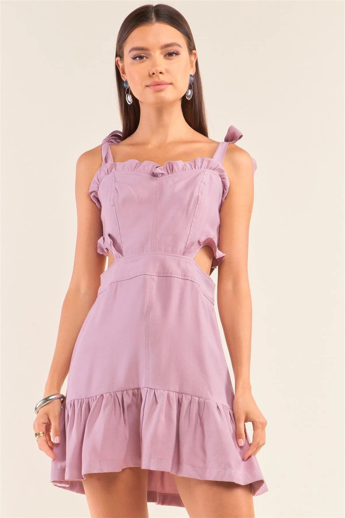 Dusty Lavender Sleeveless Ruffle Hem Cut-Out Detail Smock Back Flare Mini Dress /2-2-1