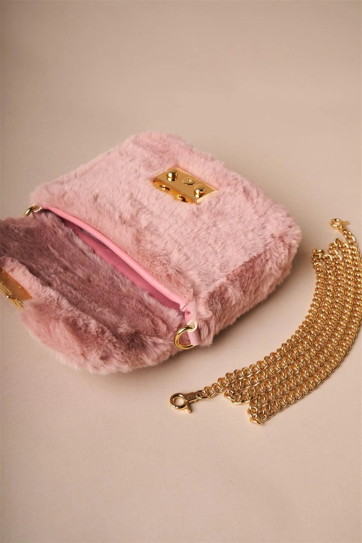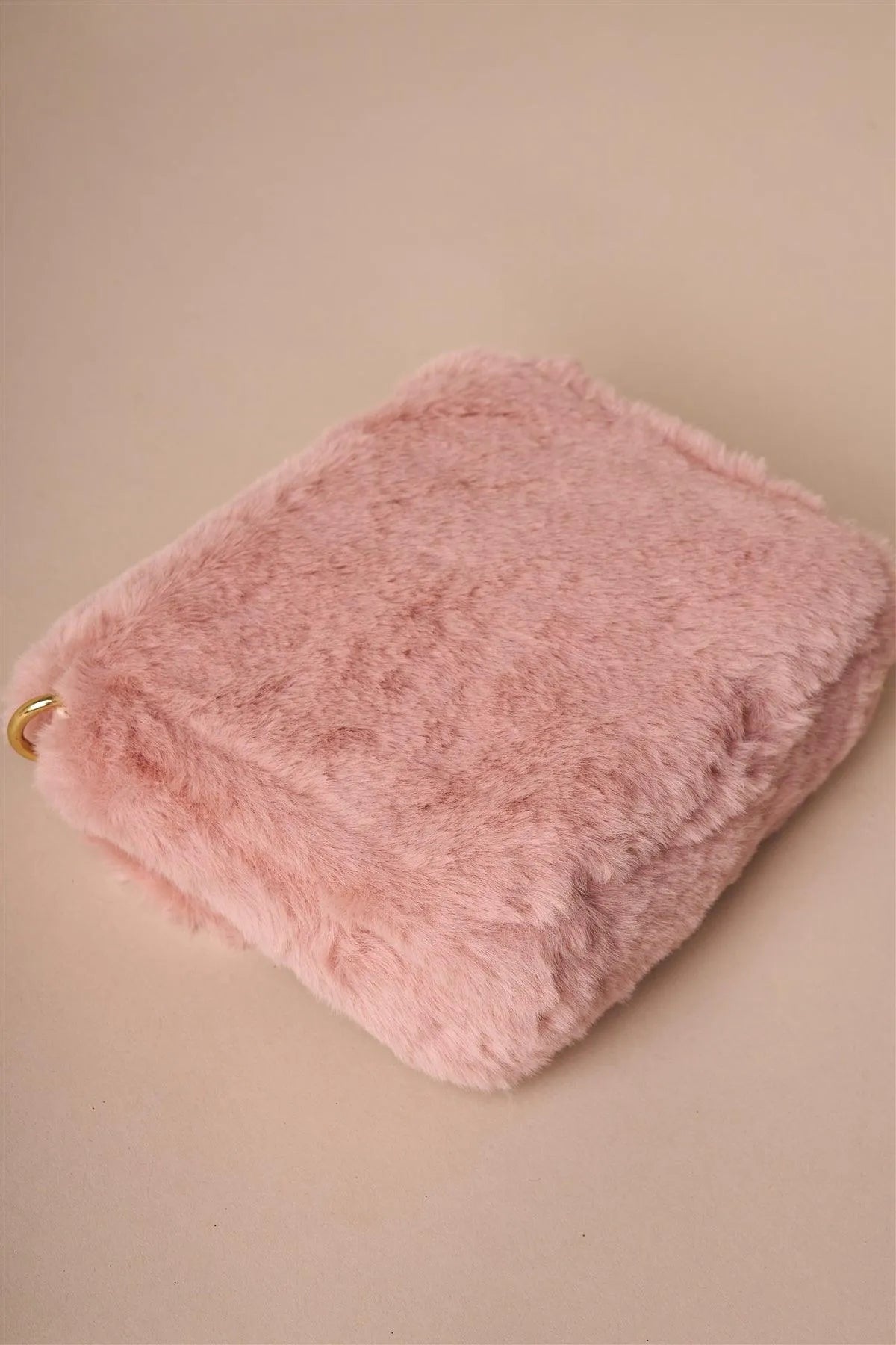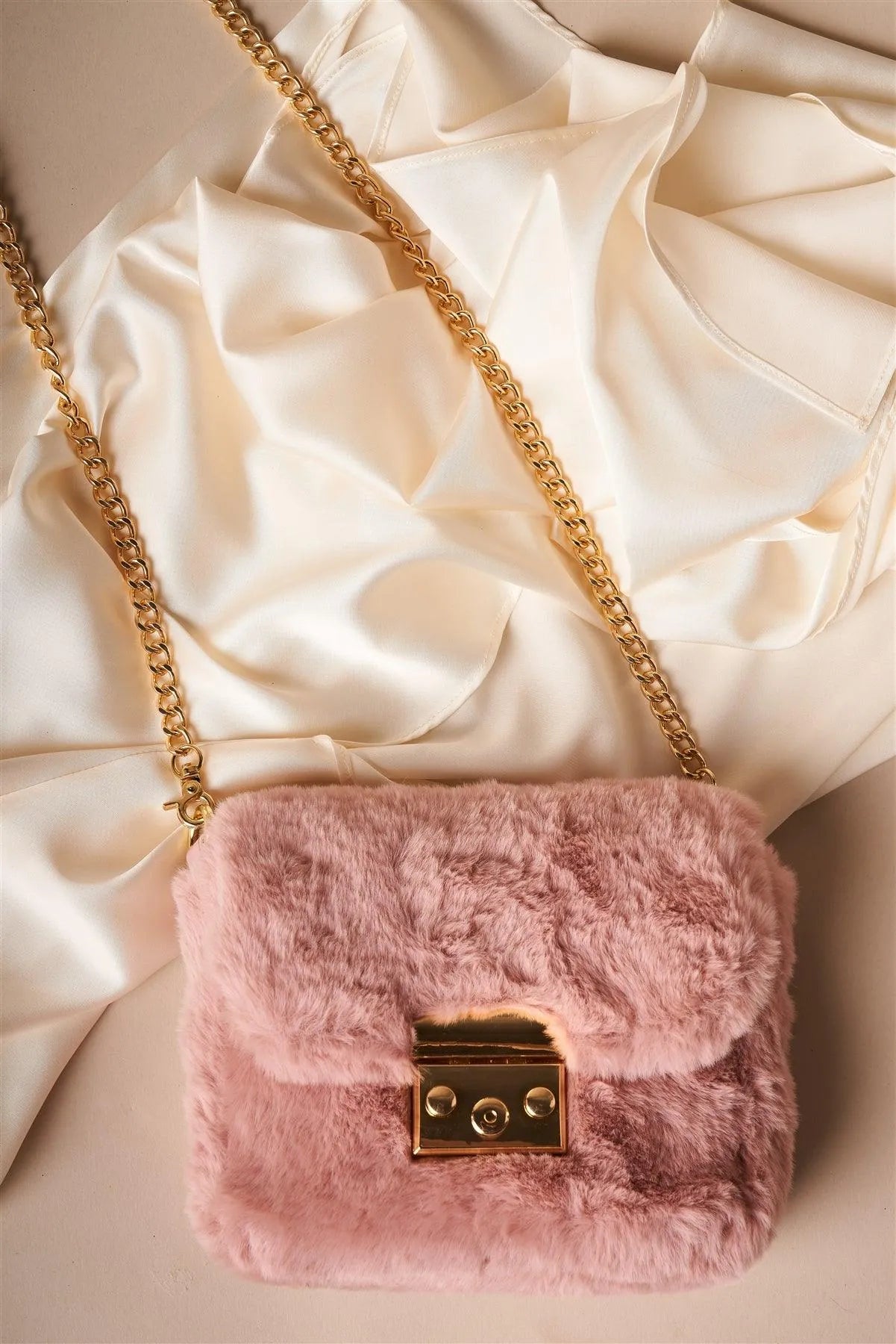Dusty Pink Faux Fur Clutch Crossbody Bag /3 Bags