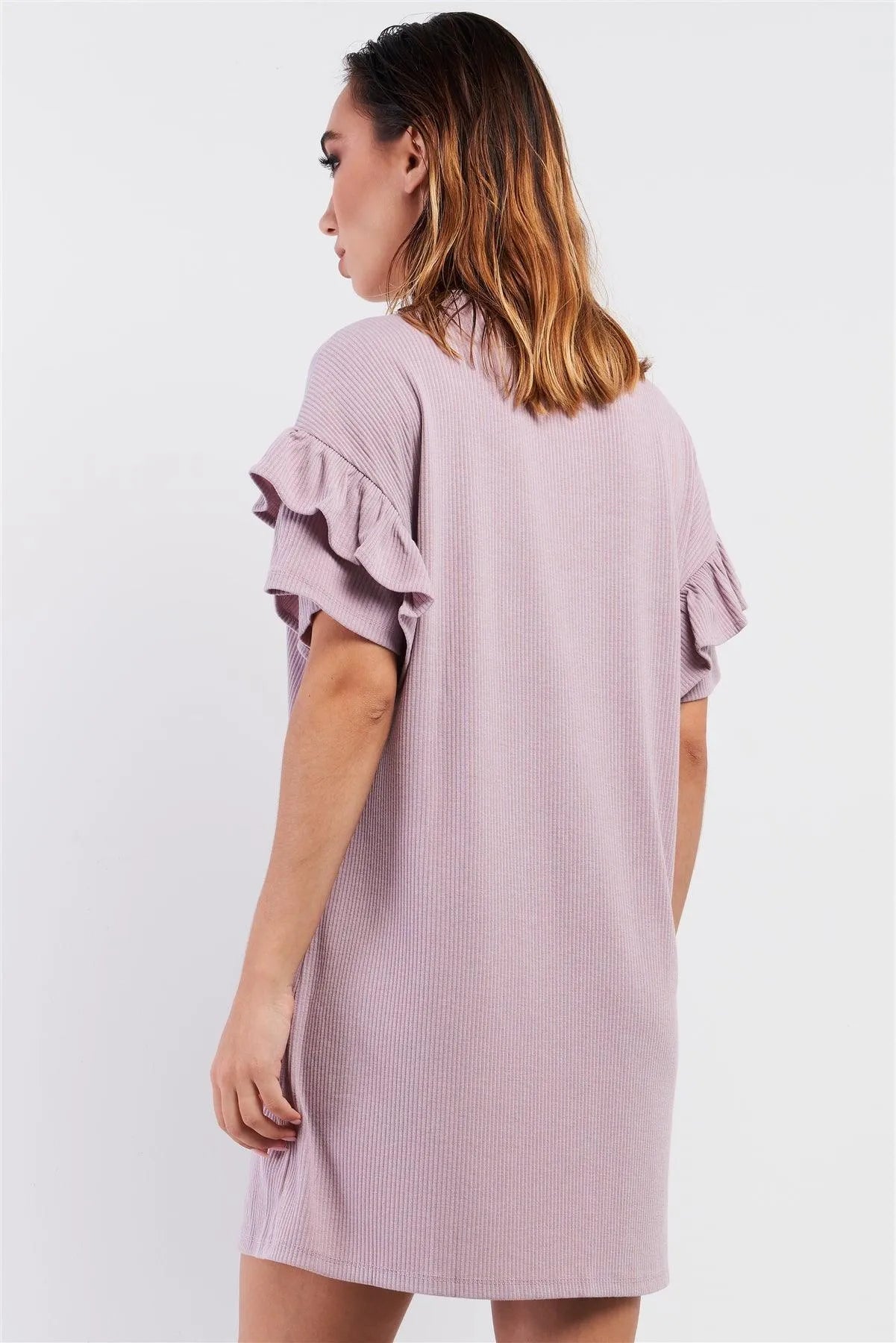 Dusty Pink Ribbed Loose Fit Layered Wing Short Sleeve T-Shirt Mini Dress /1-2-3