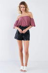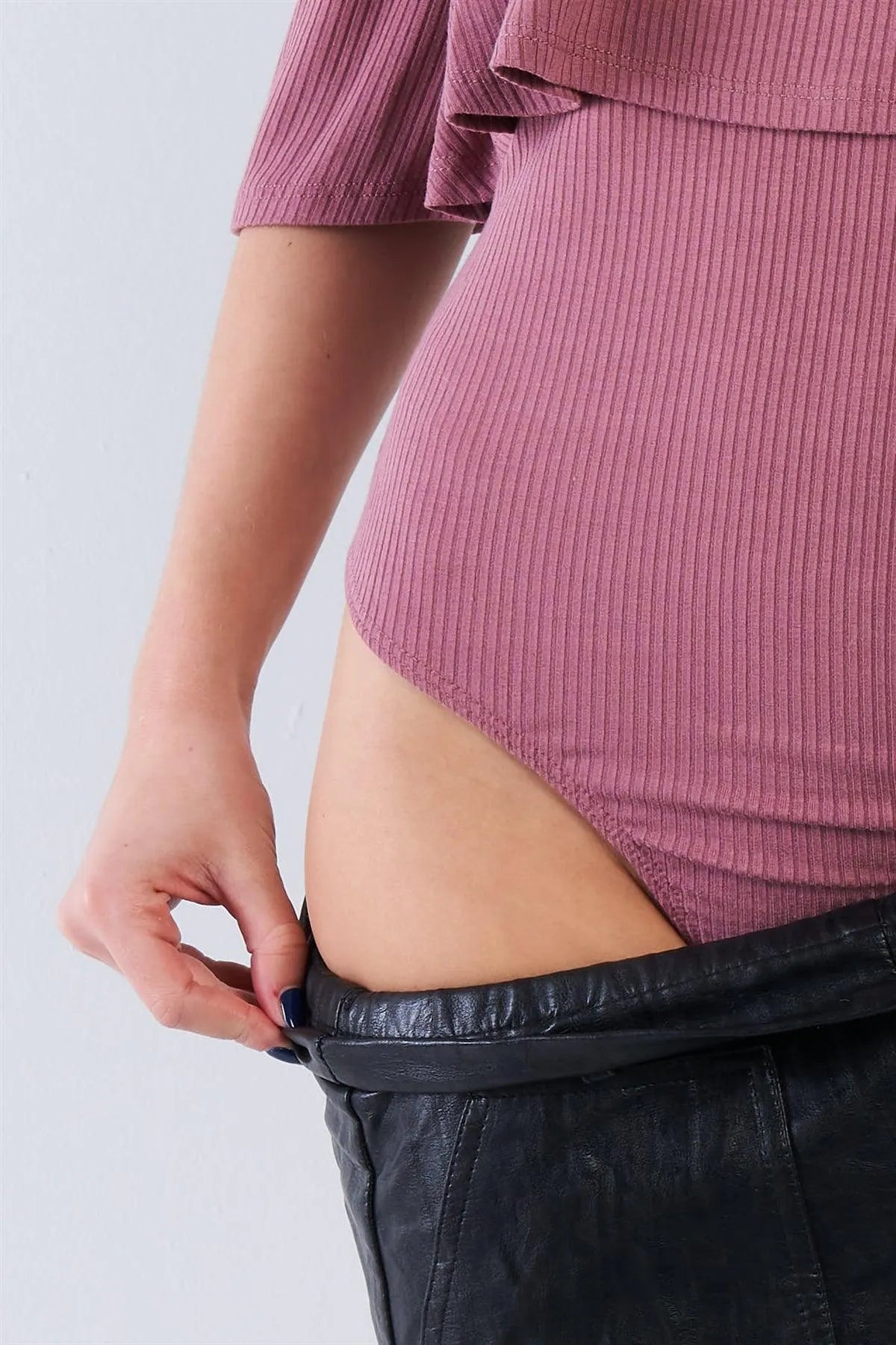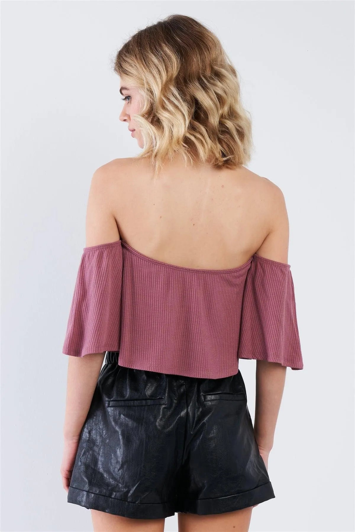 Dusty Pink Ribbed Off-The-Shoulder Flounce Trim Bodysuit /3-2-1