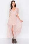 Dusty Rose Pink V-Neck Open Back Sheer Chiffon Maxi Dress /2-2-1