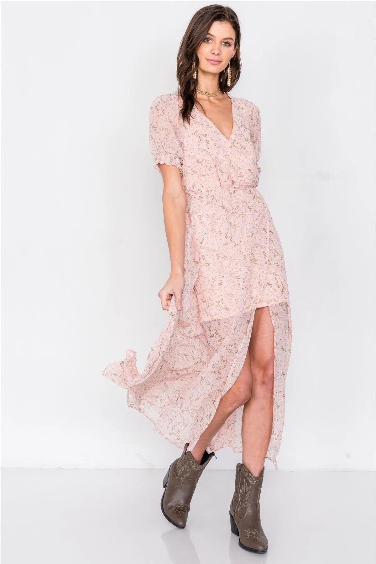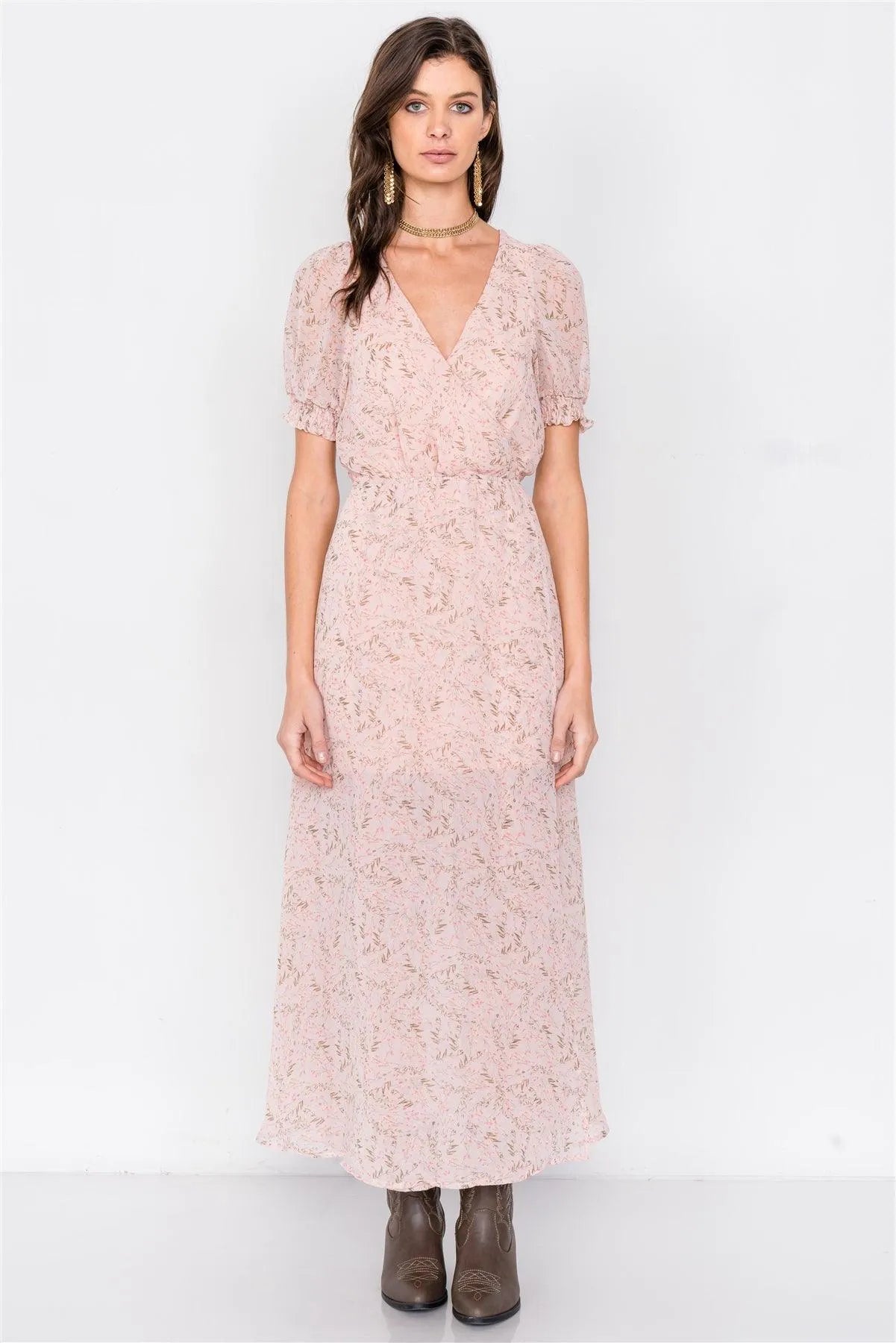 Romantic Leaf Print Long Sleeve Chiffon Boutique Boho Maxi DressVendor:One The Land