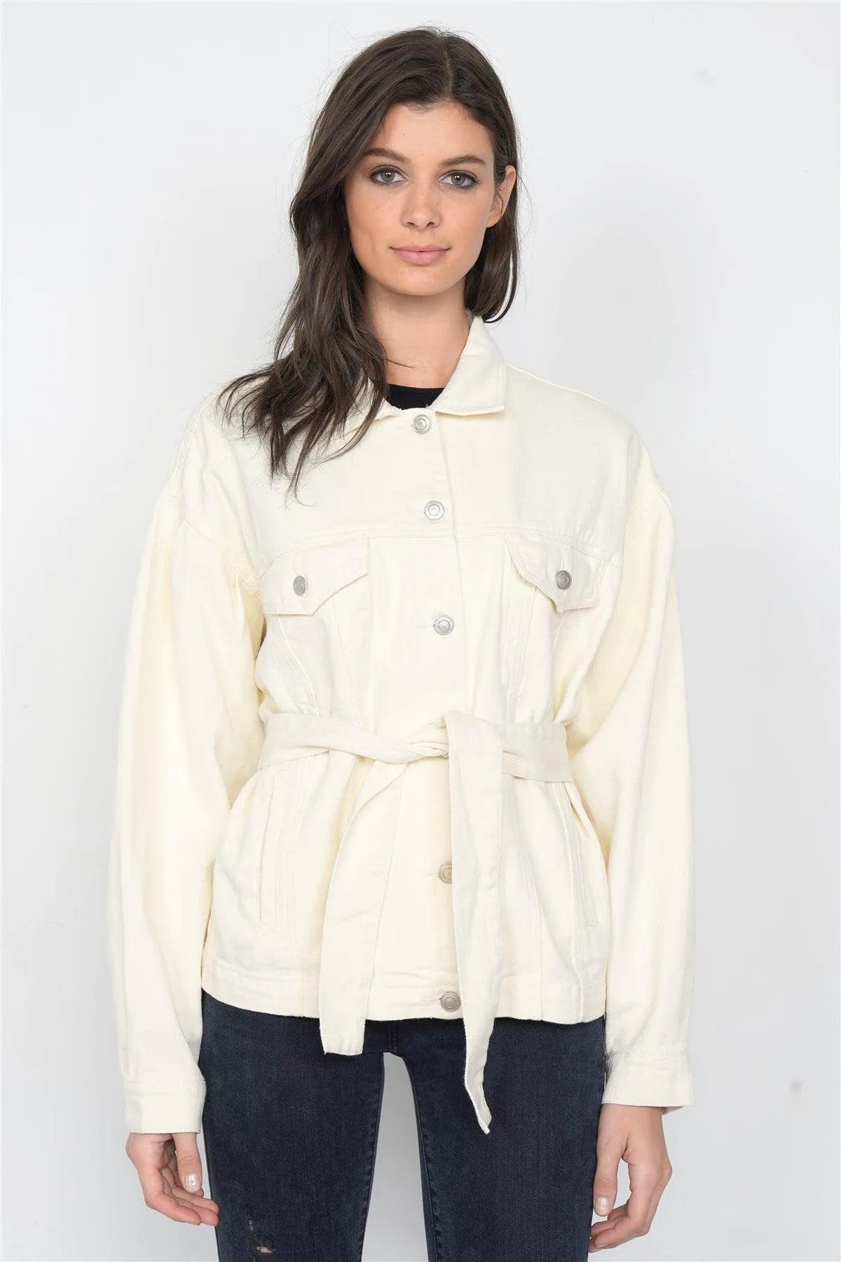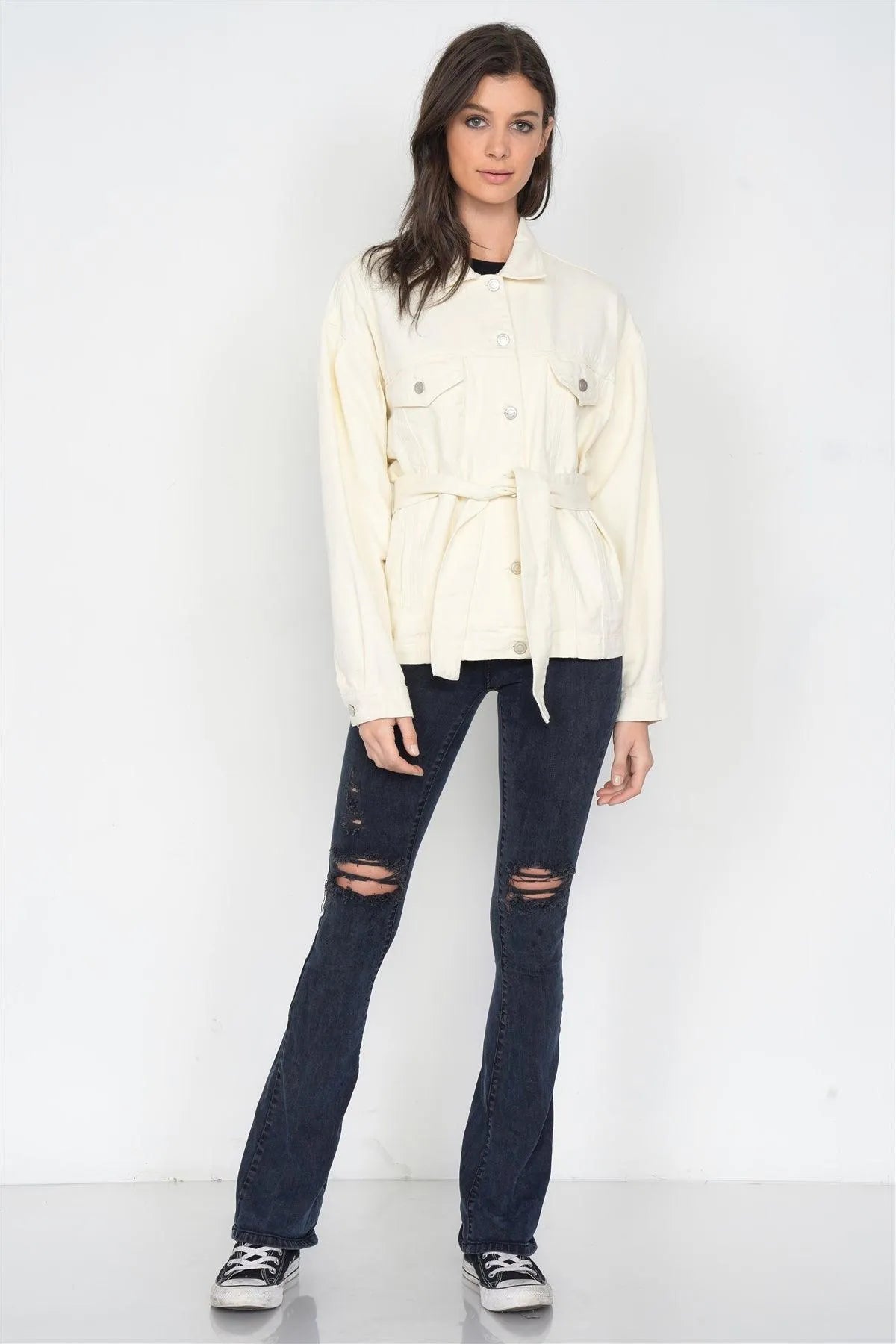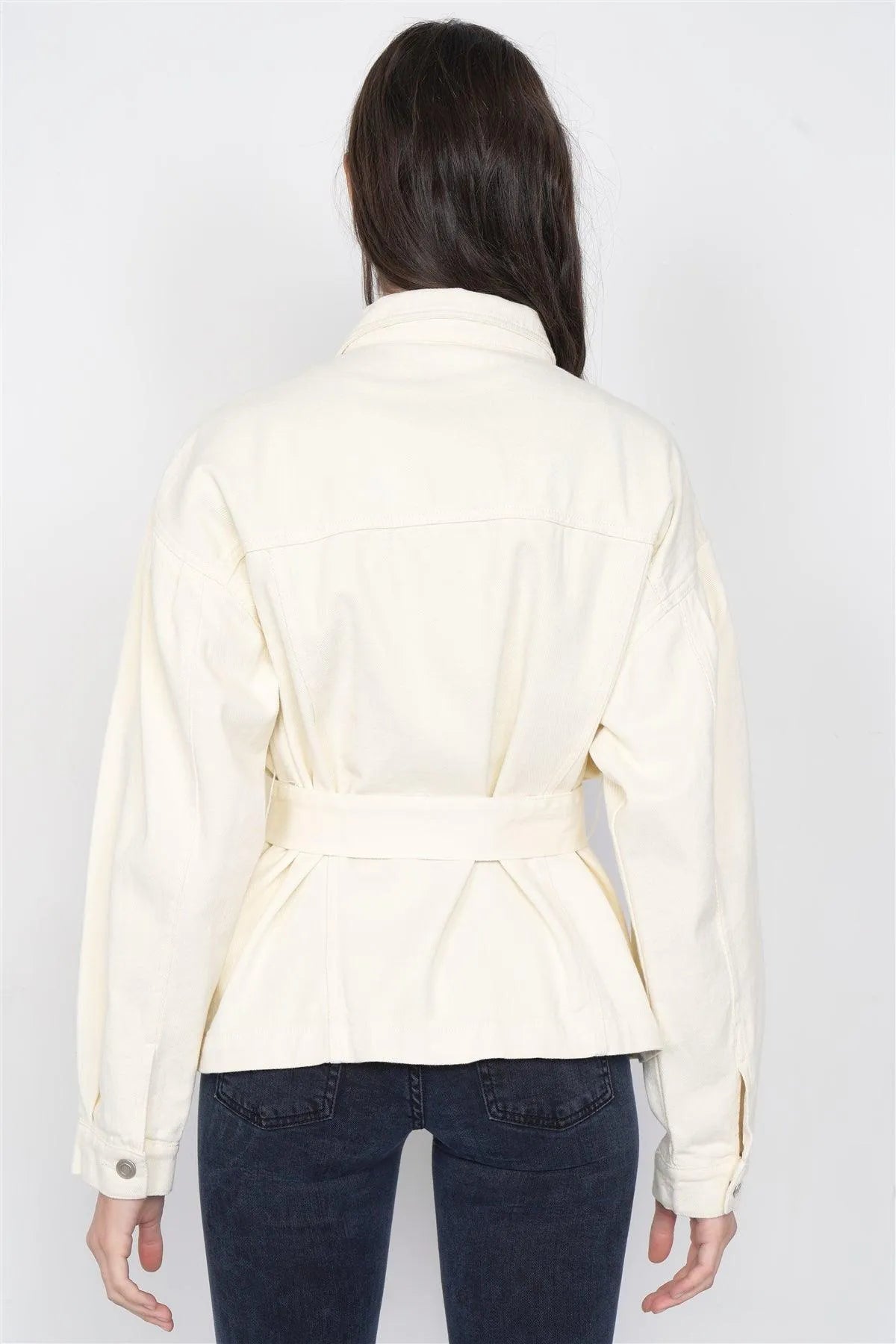 Ecru Beige Cotton Denim Self-Wrap Jean Jacket /3-2-1