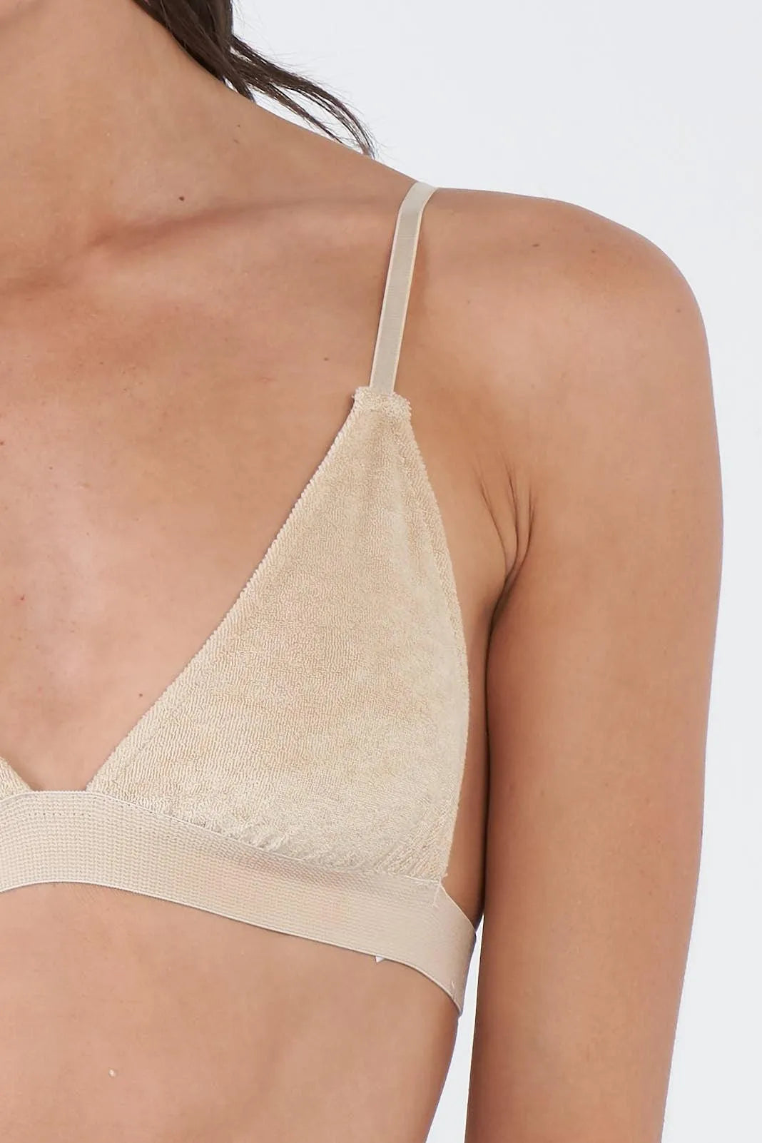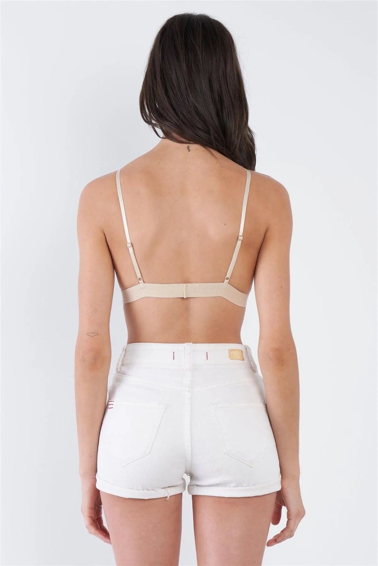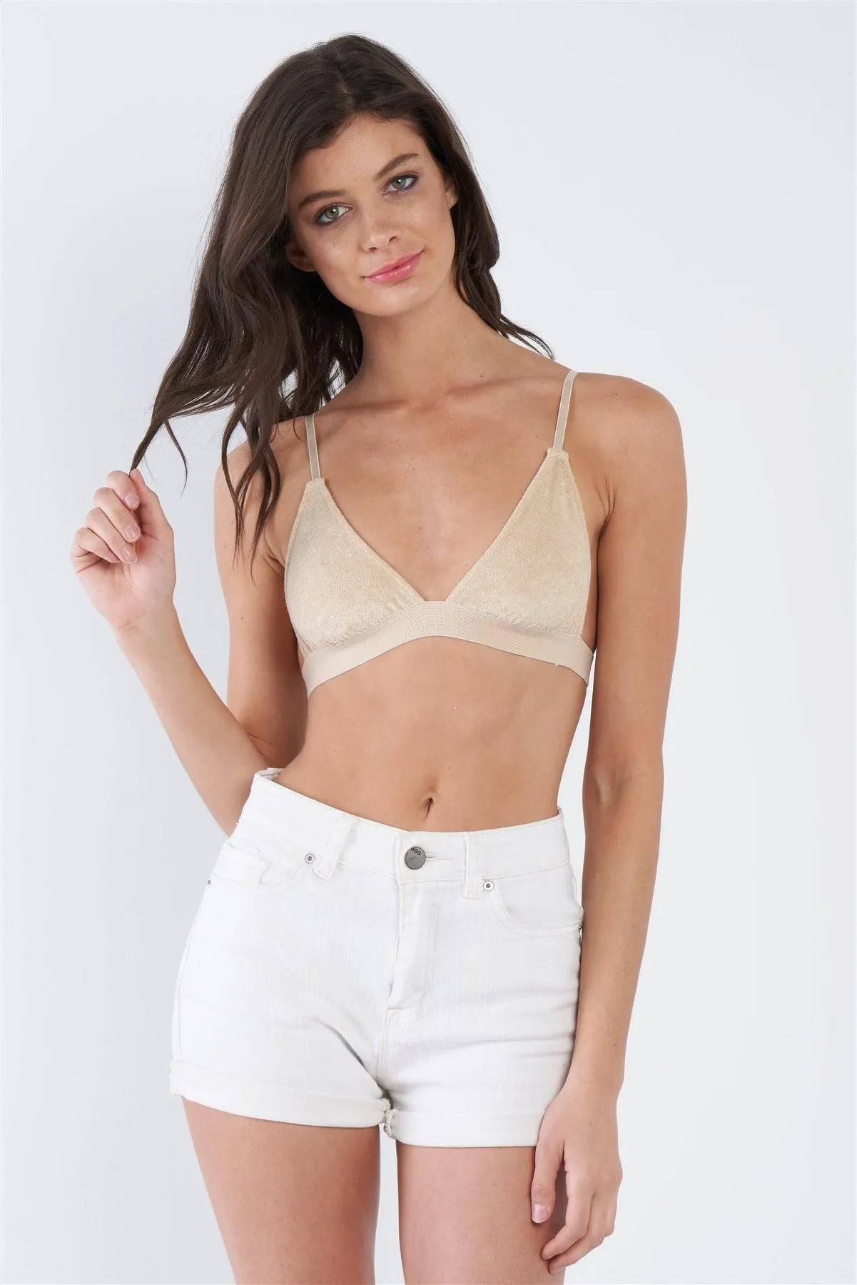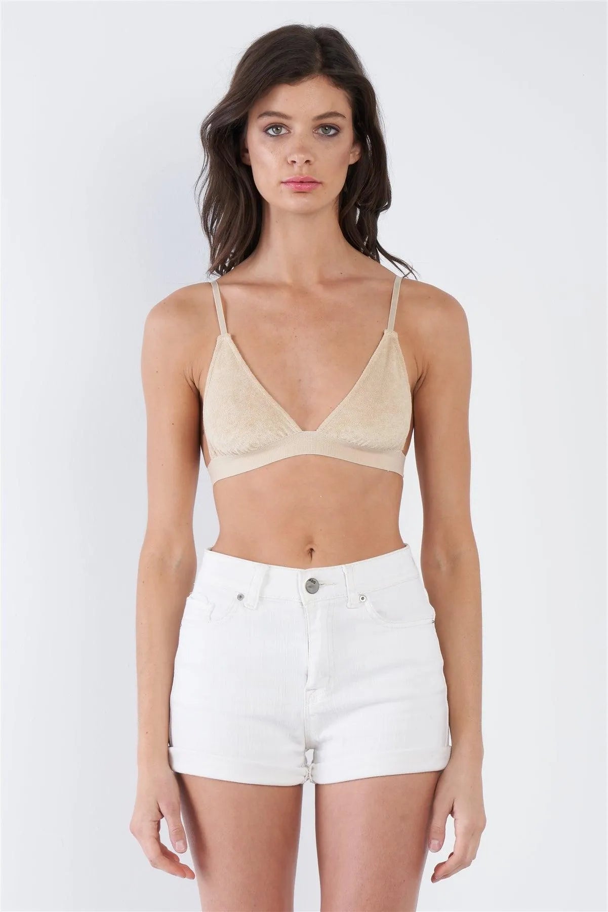 Ecru Nude Tan Microfiber Suede Adjustable Cami Triangle Bra /3-2-1