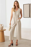 Relaxed Cotton Mineral Wash Pockets Harem Lounge RomperVendor:HYFVE