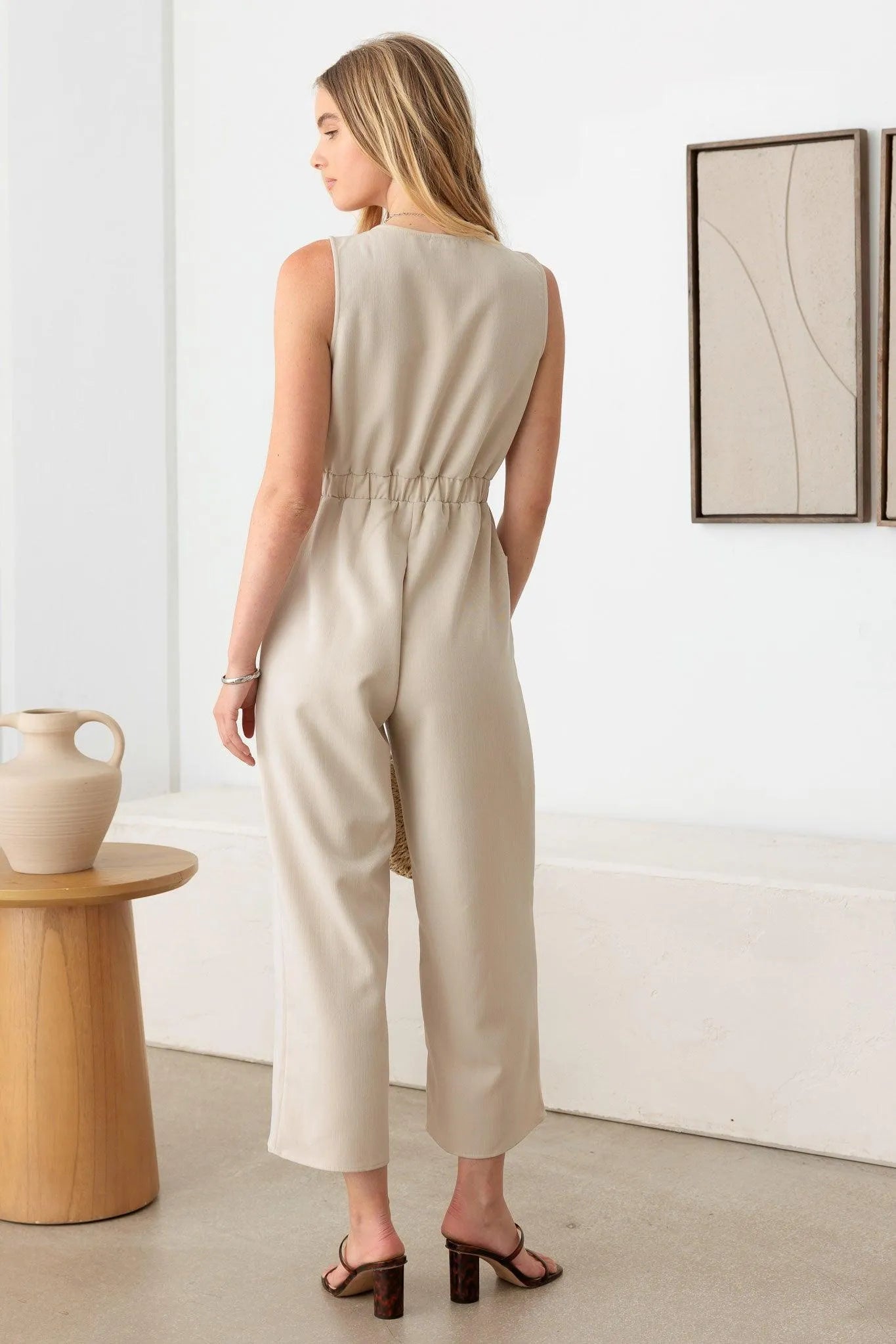 Sleeveless Front Zipper Wide Leg Jumpsuit