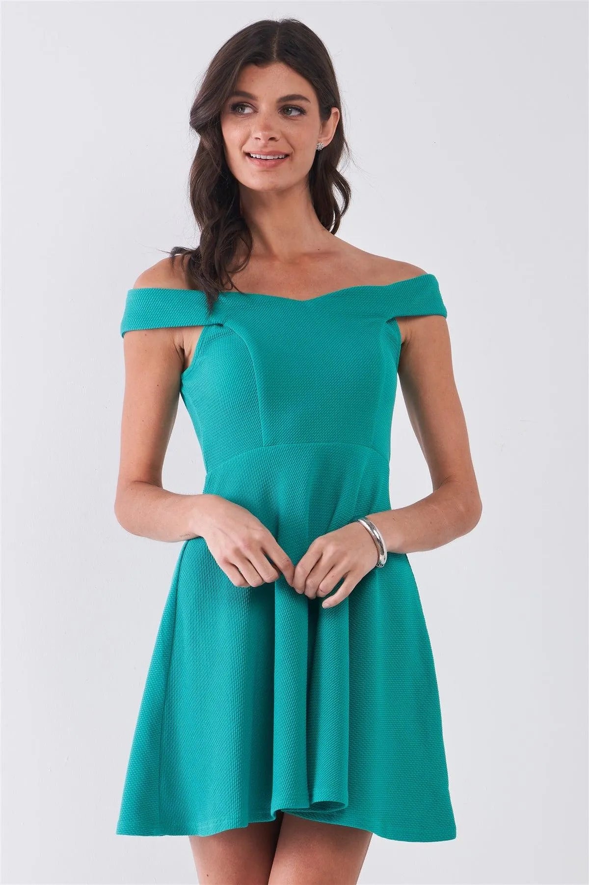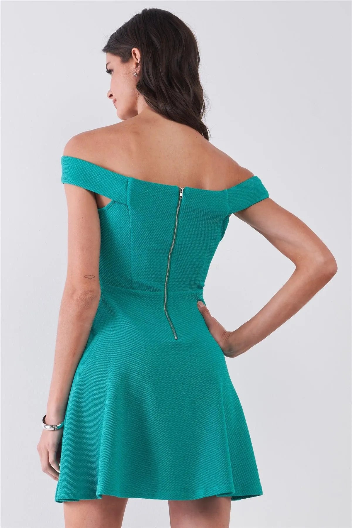 Emerald Green Sleeveless Off-The-Shoulder A-Line Flare Mini Dress /1-2-2-2