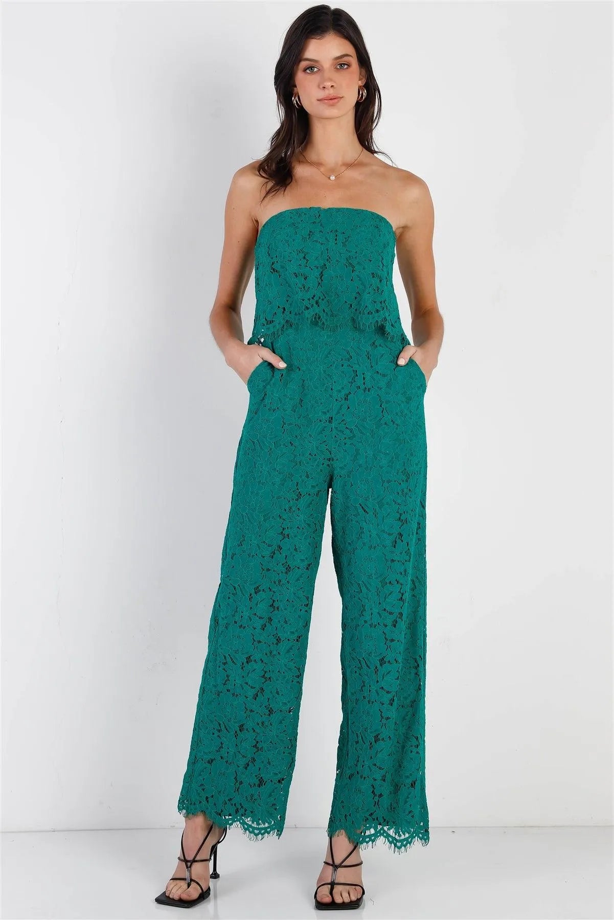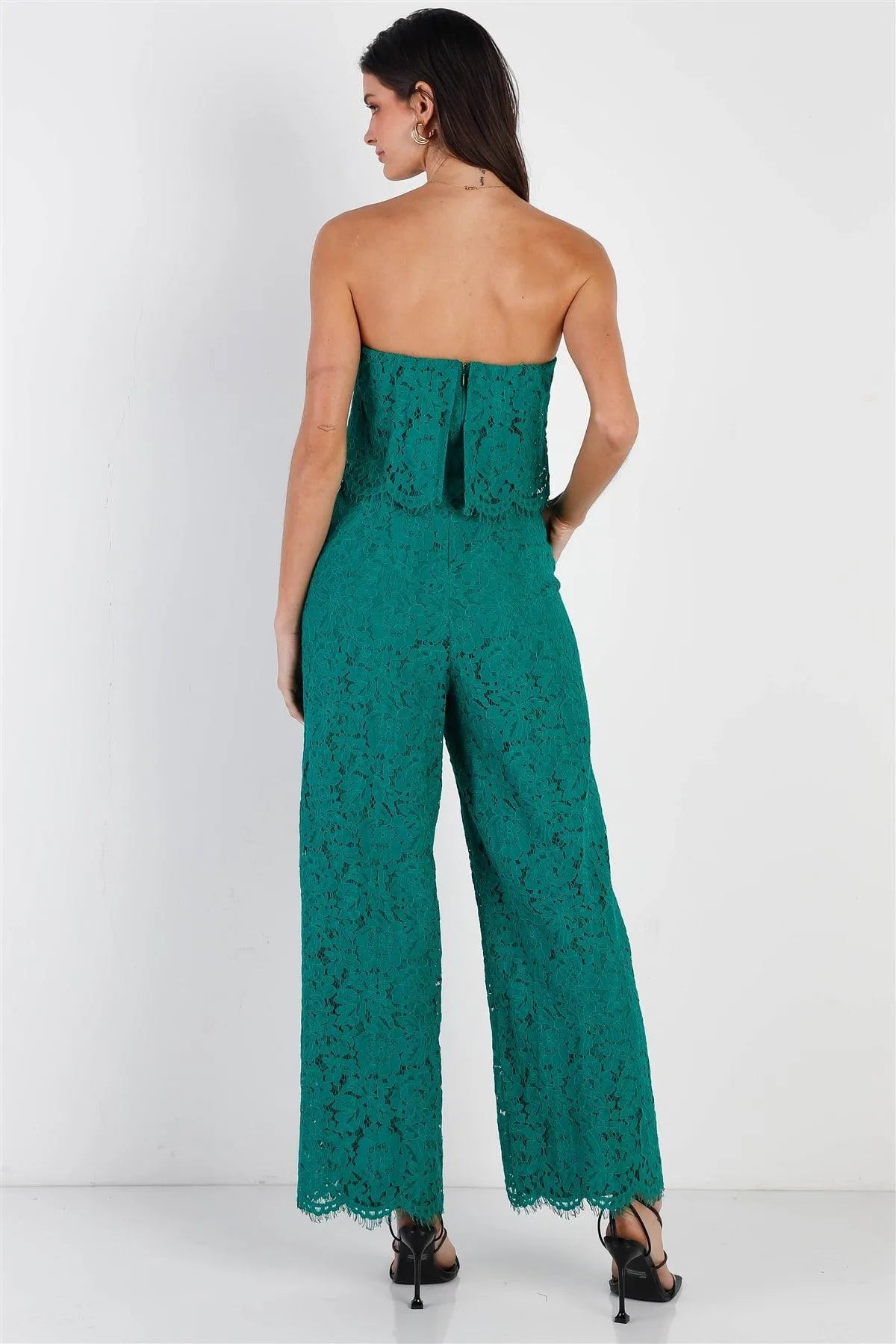 Emerald Lace Sleeveless Wide Leg Jumpsuit /2-1-2-1