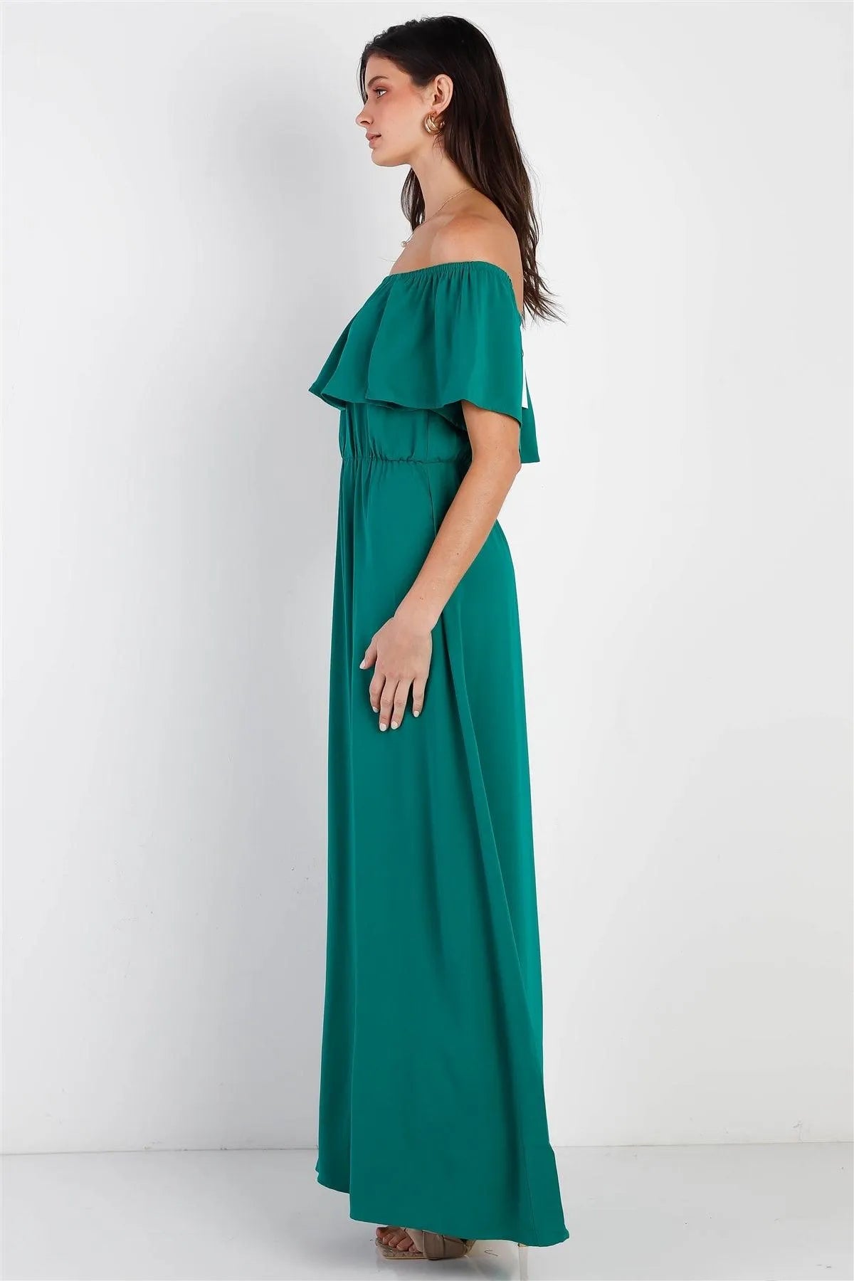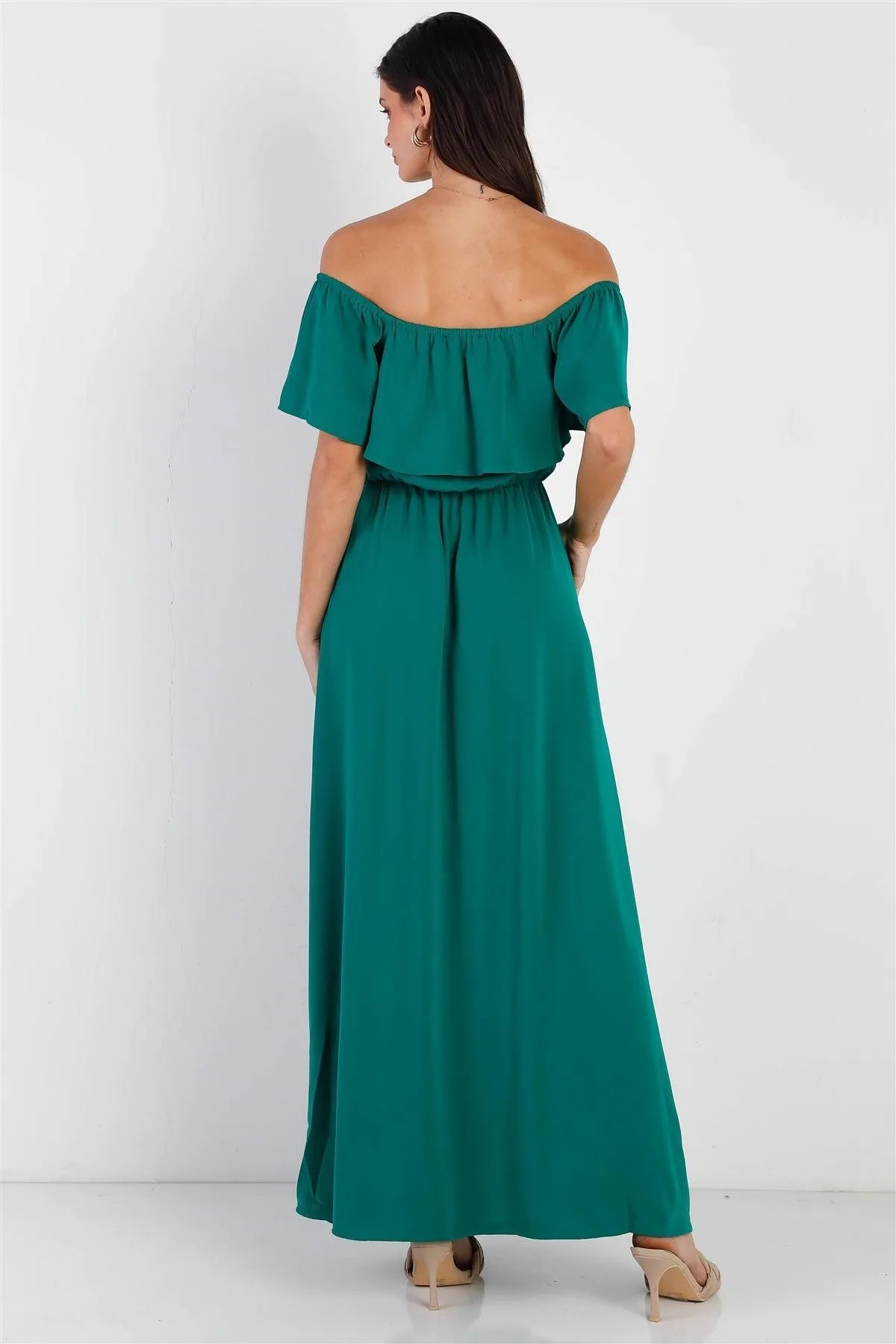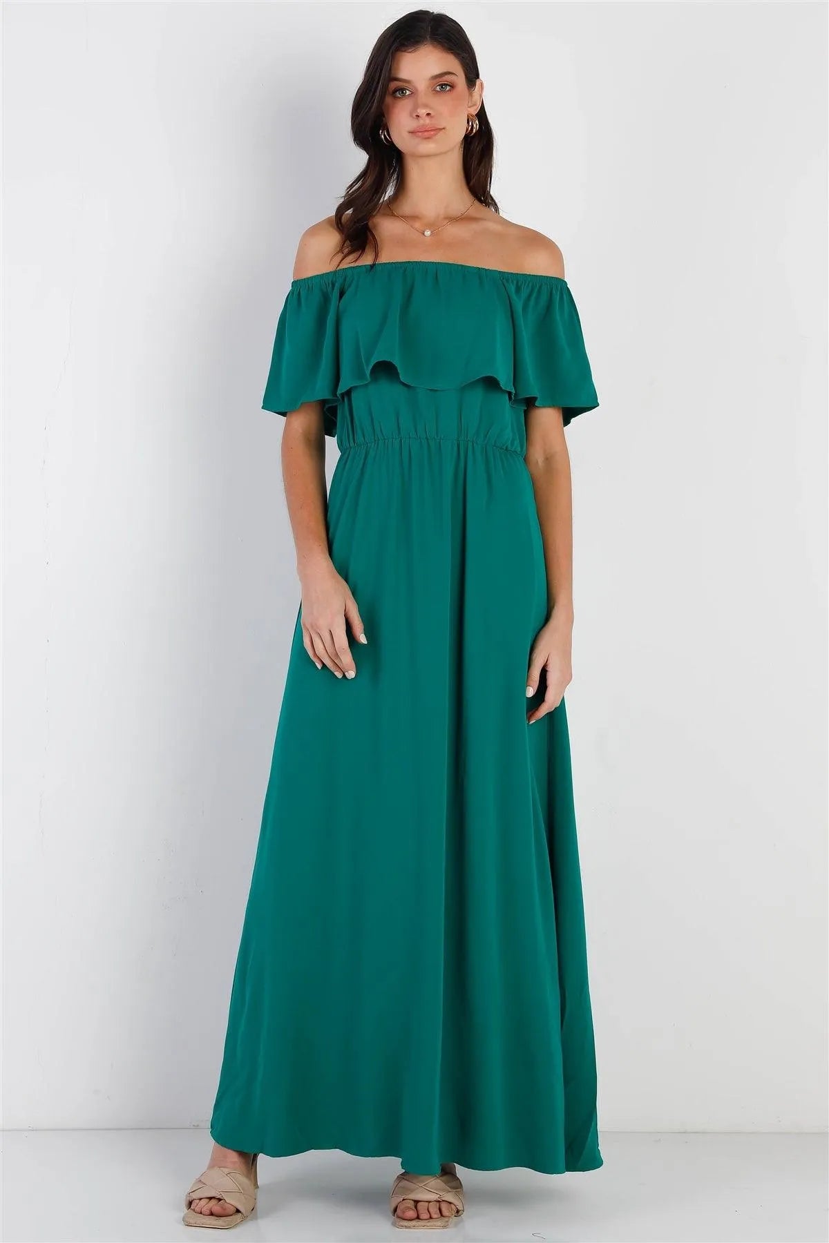 Emerald Off-The-Shoulder Ruffle Collar Maxi Dress /1-2-2-1