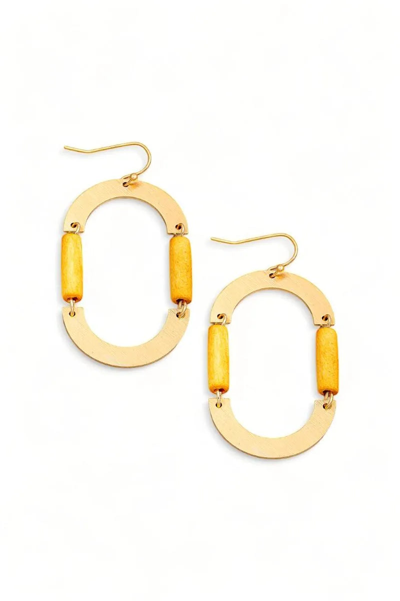 Boho Metal Brushed Wooden Semi Circle Drop Earrings