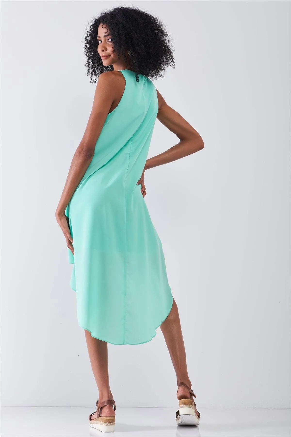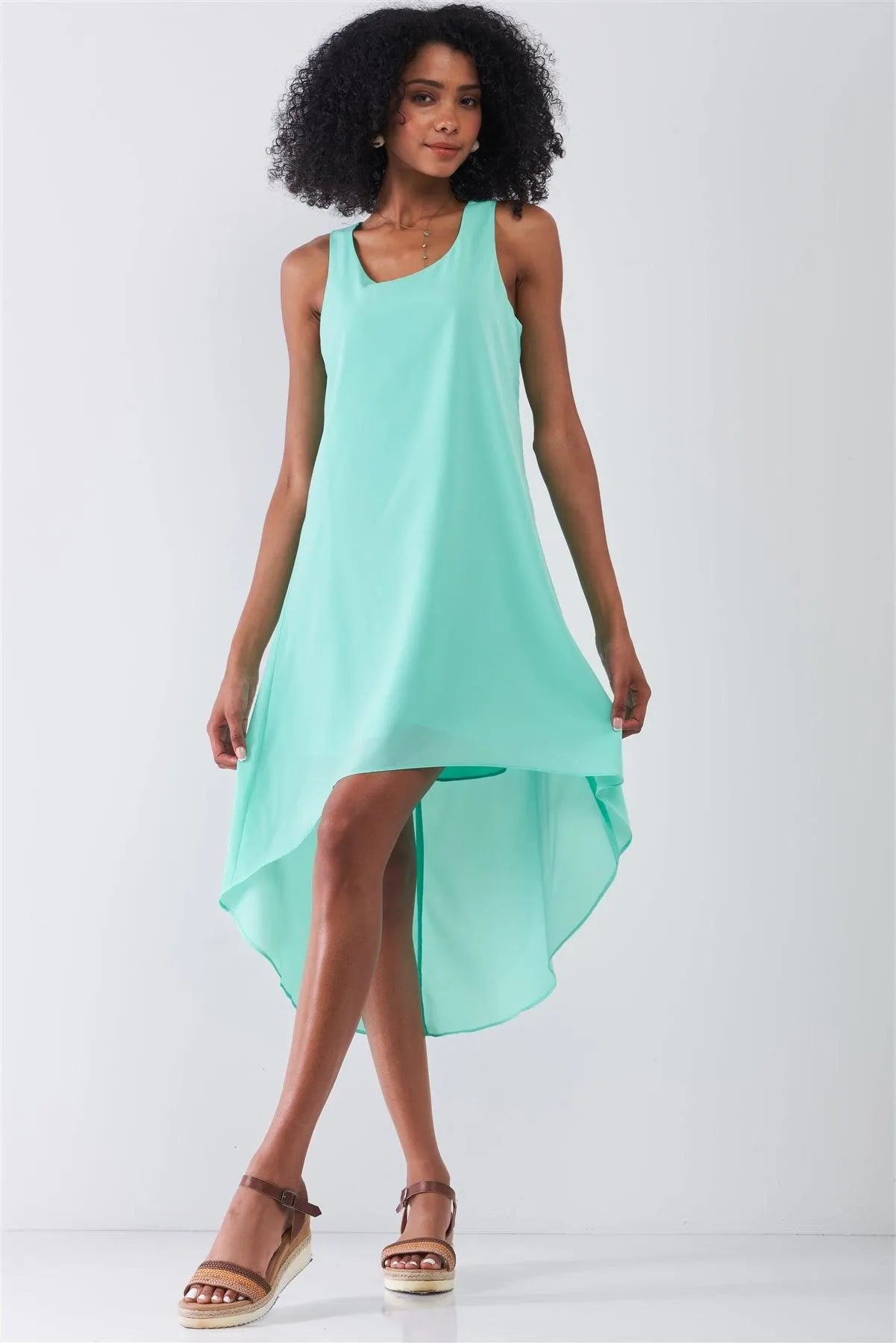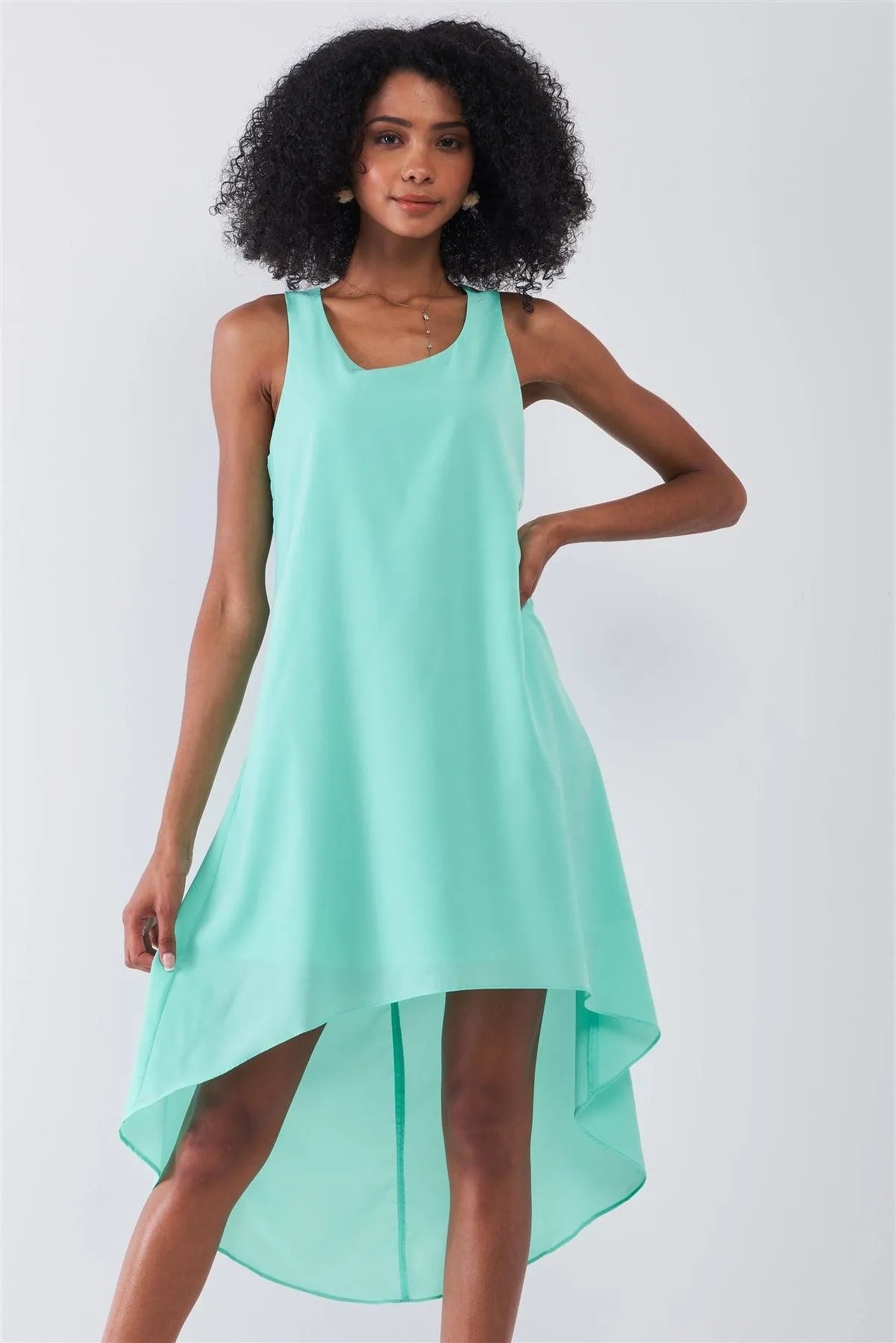 Fresh Mint Round Neck Sleeveless Asymmetrical Hem Relaxed Uneven Dress /1-2-2-1