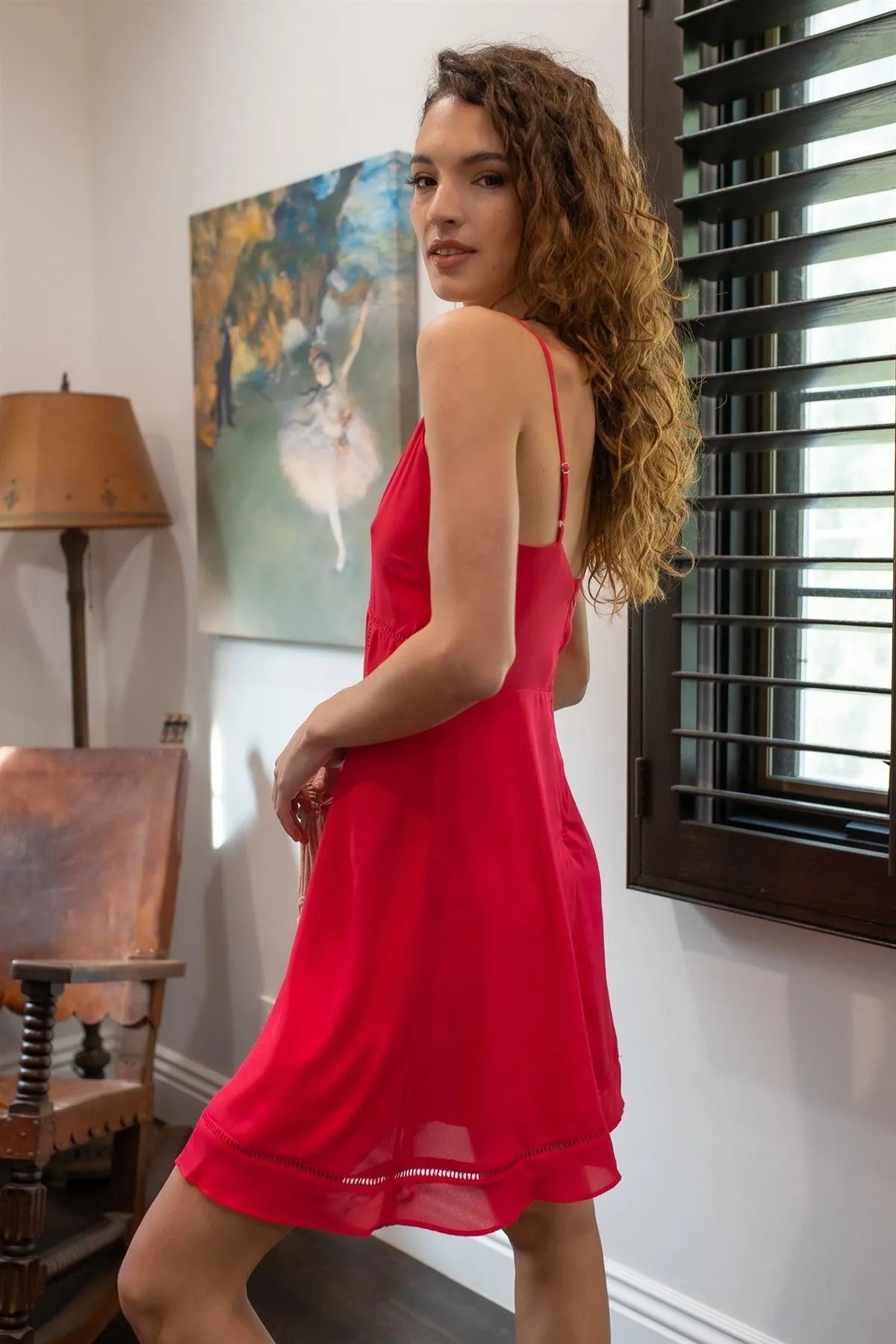 🖤 Item Features: Fuchsia, solid color, embroidered details, sleeveless, adjustable straps, v-neckline, back hidden zip and hook & eye closure, mini length, lined, non-stretchy, fitted waistline, casual, girlish, trendy, summer vibe, cute, chic