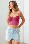 Fuchsia Delicate Lace Strappy Lettuce Hem Crop Top