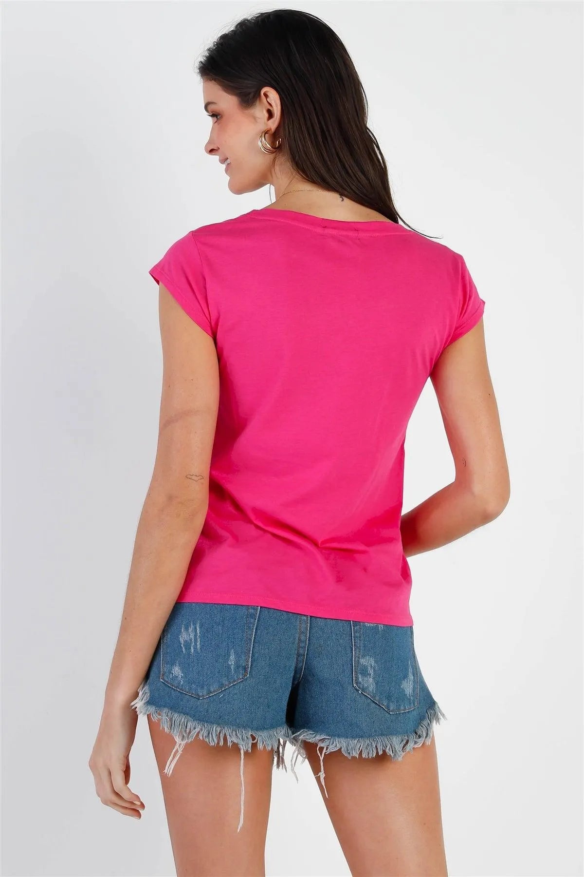 Fuchsia Short Sleeve T-Shirt Top /2-2-2
