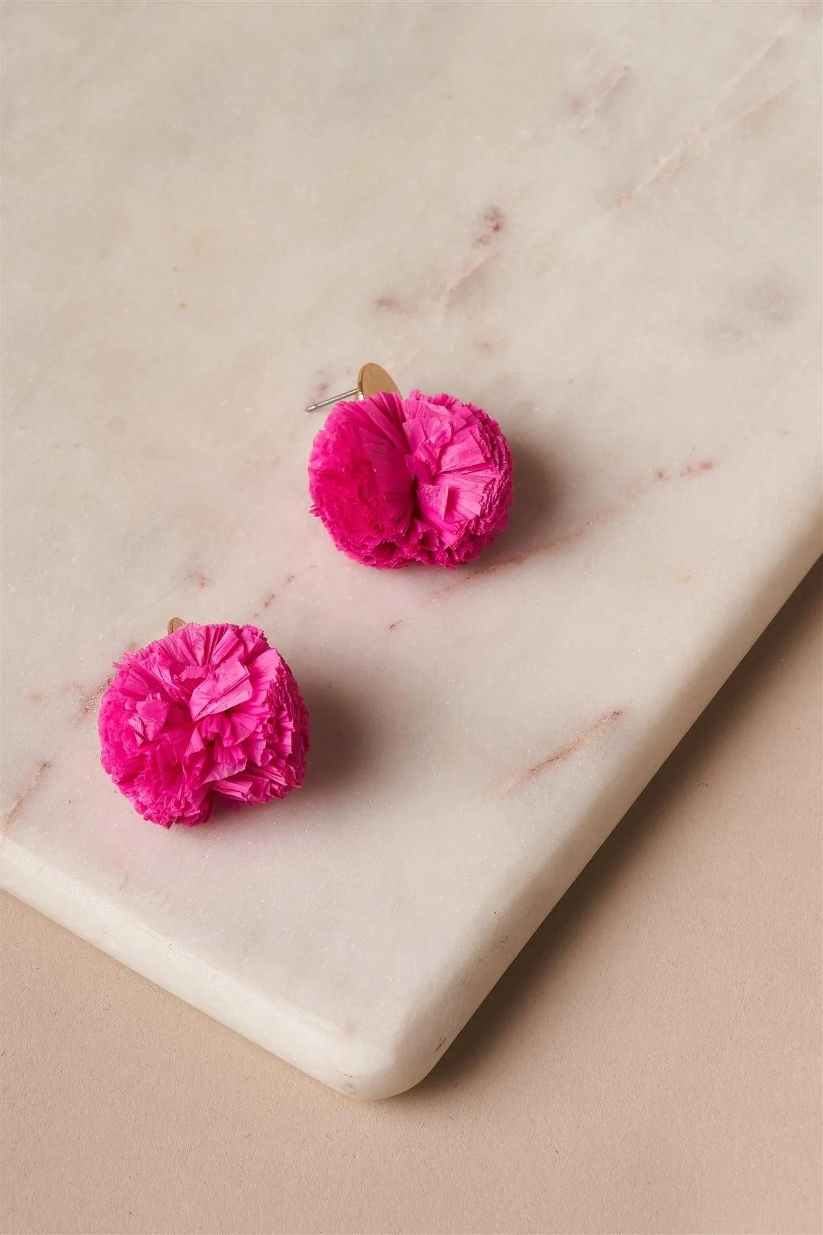 Fuchsia Raffia Pom Pom Earrings /1 Pair