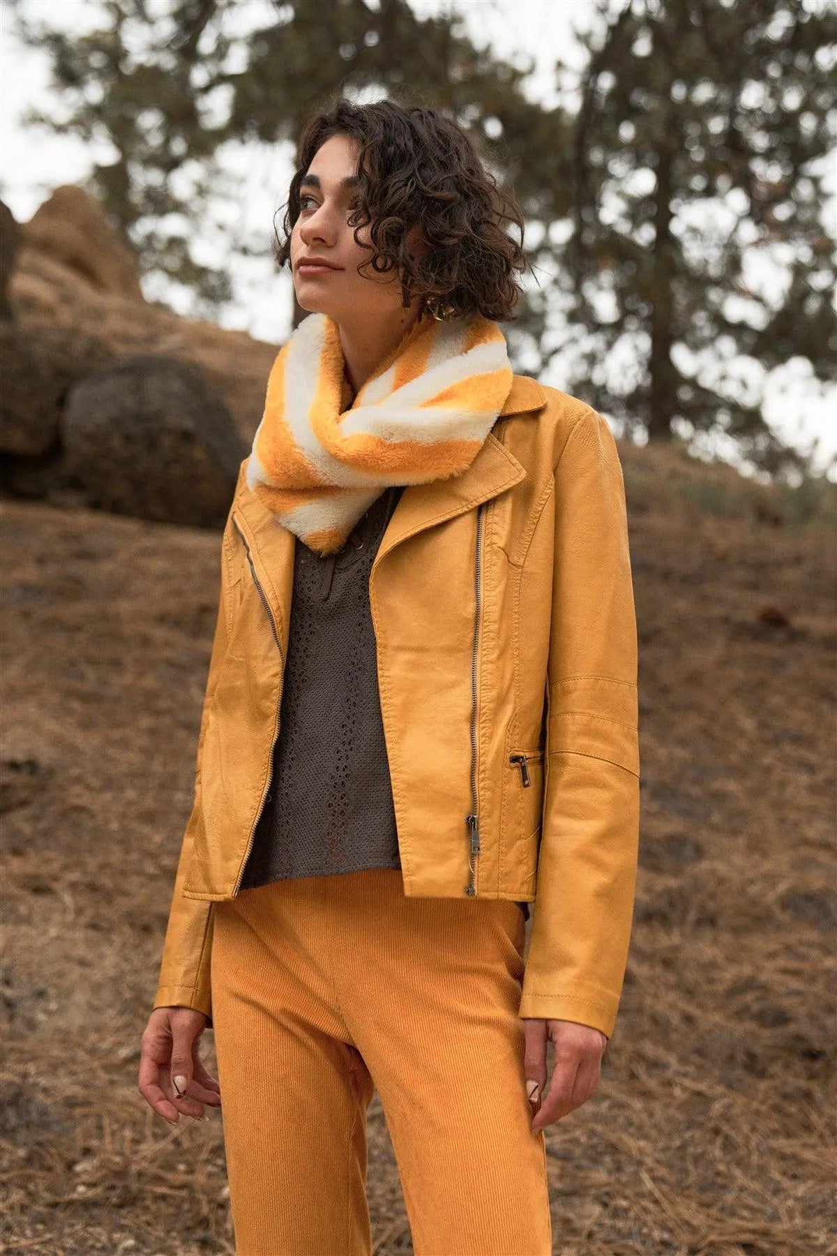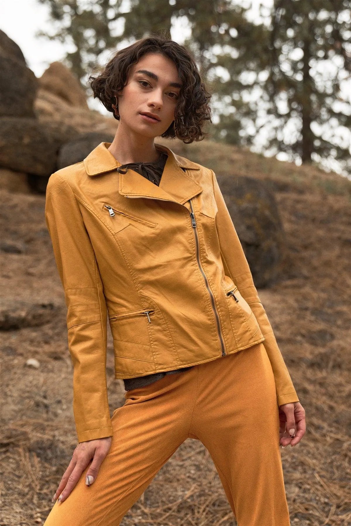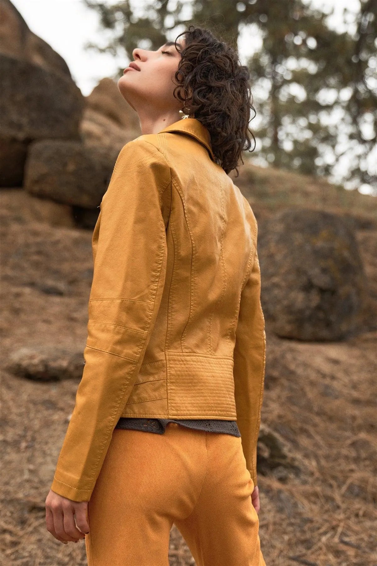 Gamboge Vegan Leather Long Sleeve Biker Jacket /1-1-1-1