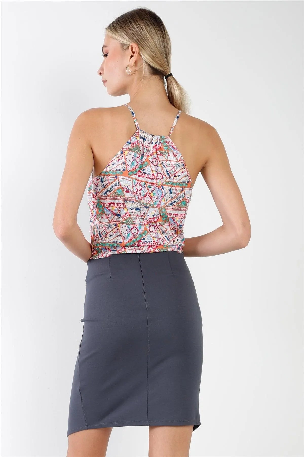 🖤 Item features: Multi pink, front self tie keyhole, nonadjustable straps, geometric print allover, mesh detailing, unlined, casual, cute, bright, trendy