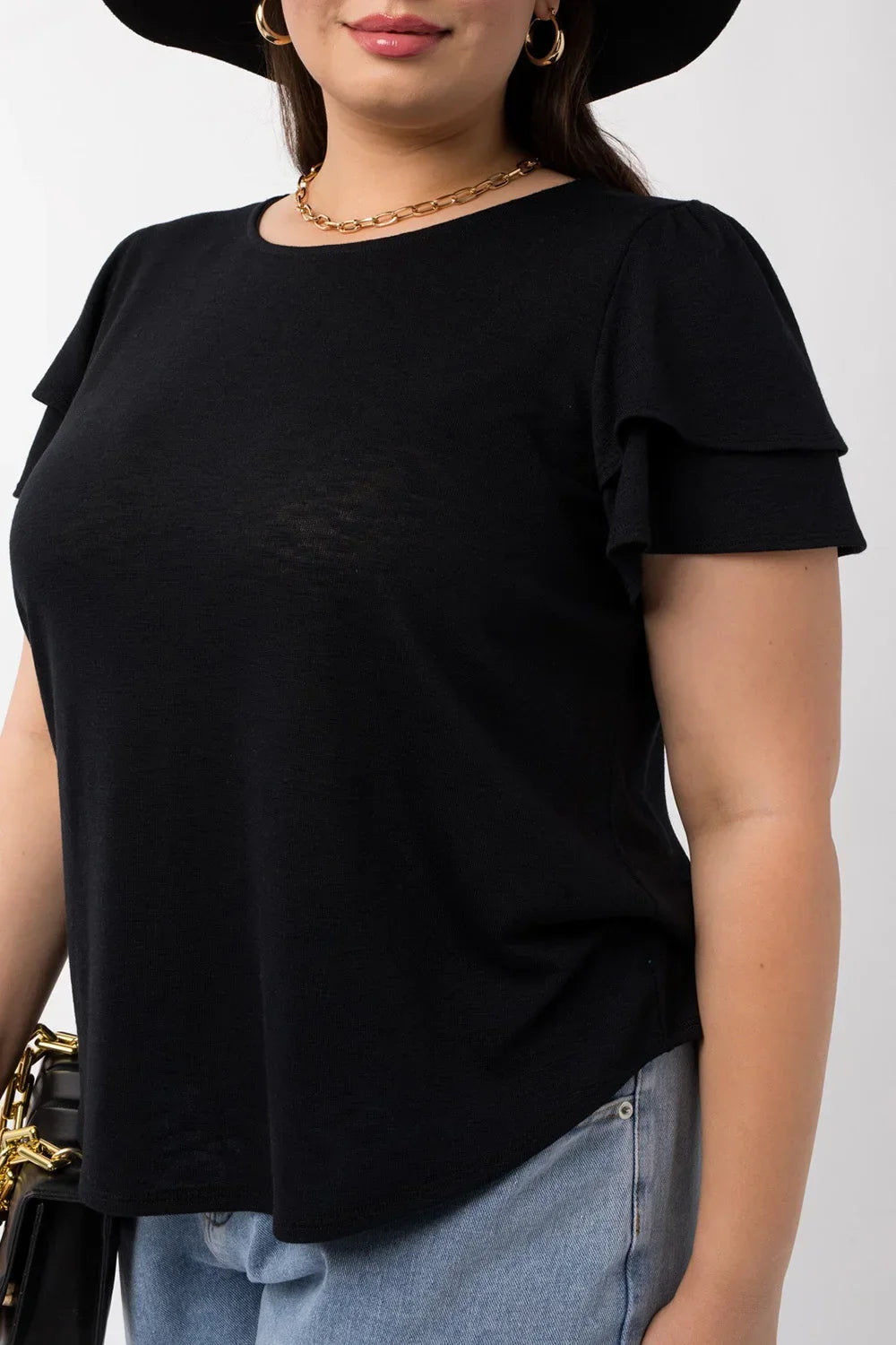 Plus Size Layered Flutter Sleeve Summer Blouse