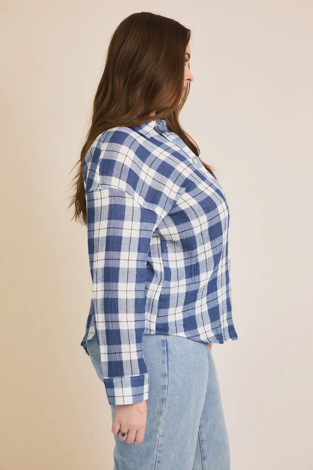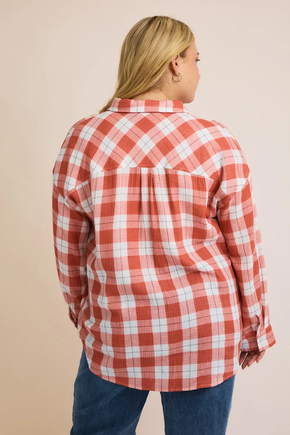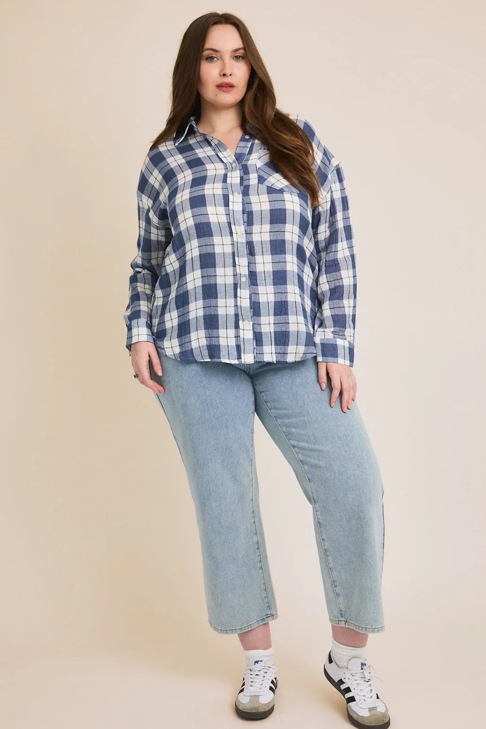 Plus Size Cotton Plaid Button Down Long Sleeve Lightweight Shirt