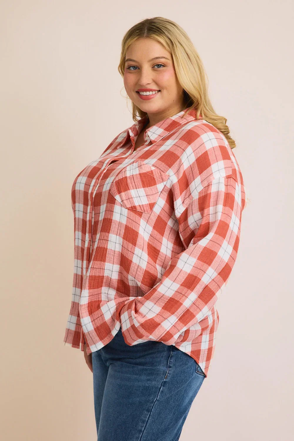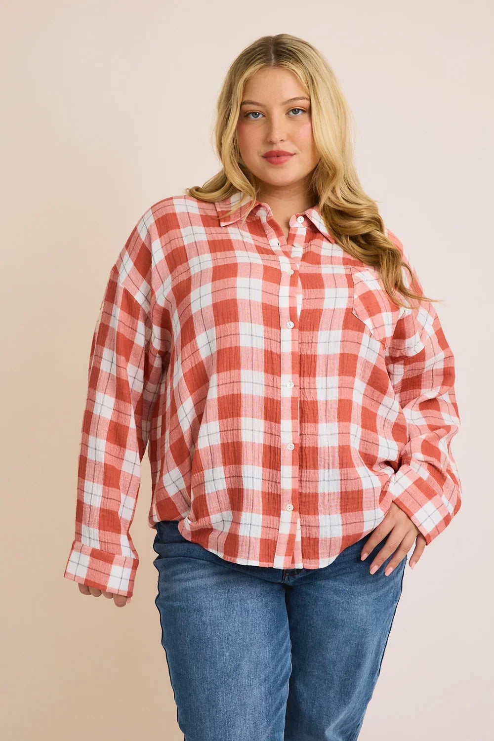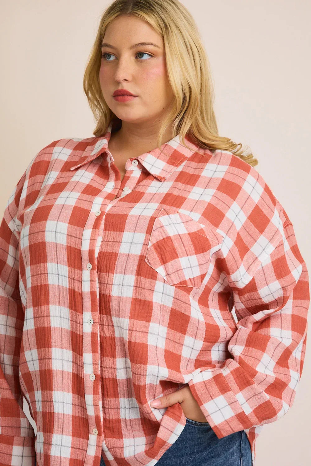 Wonderfully versatile and effortlessly chic, our Plus Size Plaid Button Down Shirt is the wardrobe essential your boutique customers have been searching for! This timeless relaxed fit shirt comes in two gorgeous color options - classic blue and white or trendy coral and white plaid patterns that create the perfect balance of casual and polished style. Crafted from lightweight breathable cotton, this versatile plus size top combines comfort with everyday wearability that fashion-conscious women are actively seeking for their year-round collections.