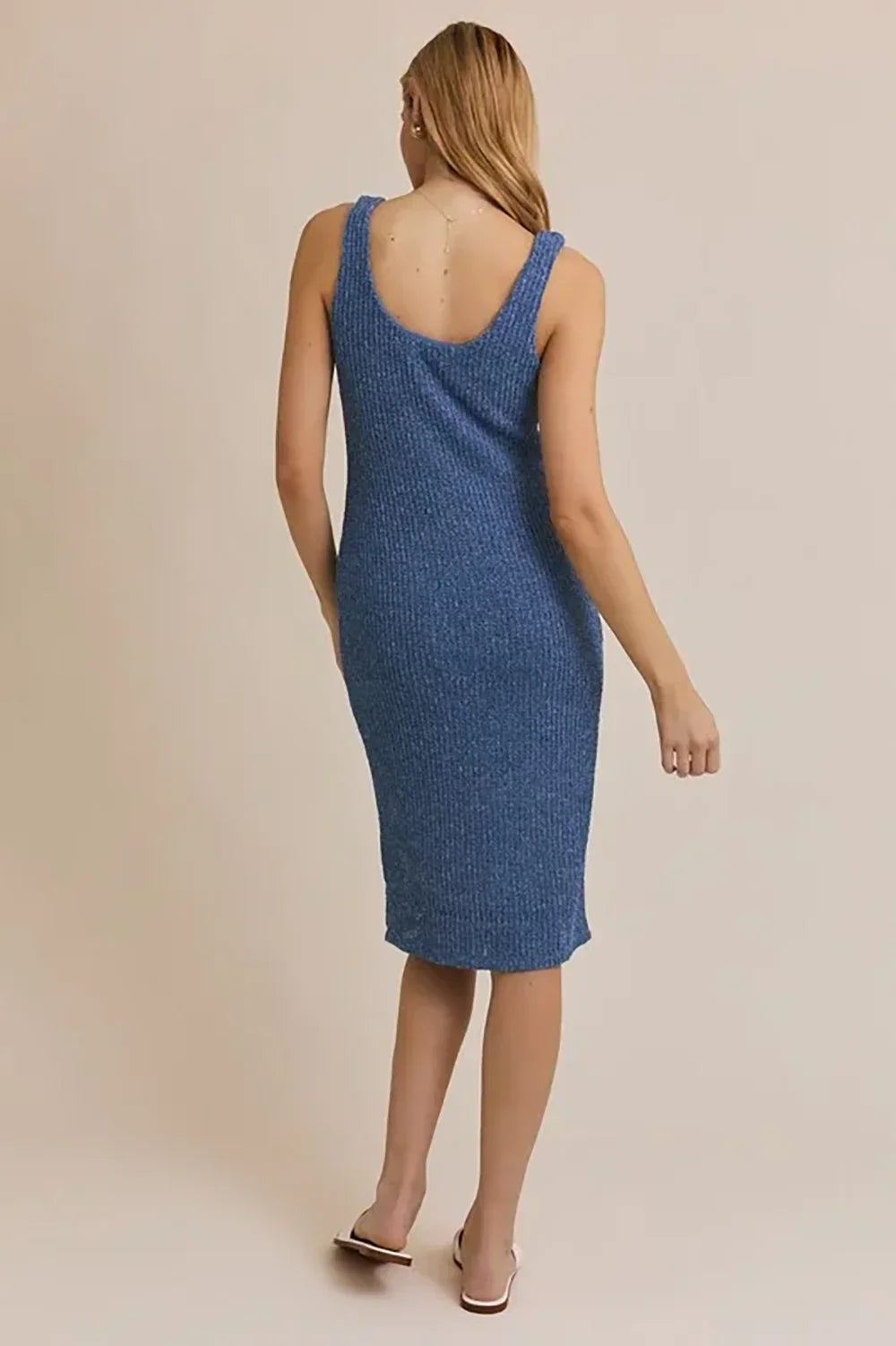 Blue Ribbed Knit Tank Contemporary Bodycon Elegance Midi Dress