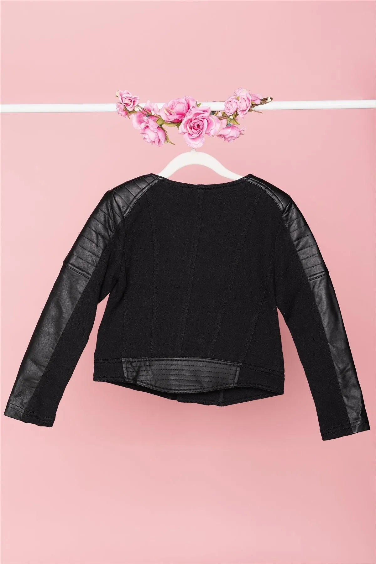 Girls Black Faux Leather Moto Jacket / 1-3-1