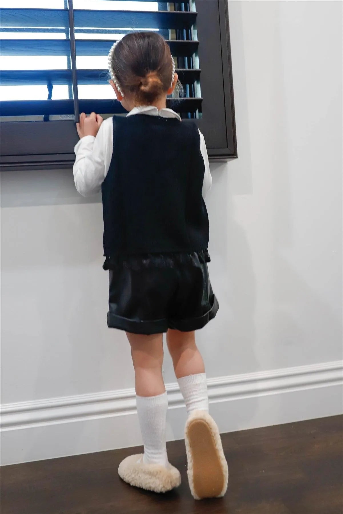 Toddler Girls Black Knit Hem Detail Self-Tie Vest /2-2-2