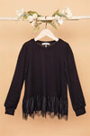 Toddler Girls Black Knit Long Sleeve Lace Hem Sweater /2-3