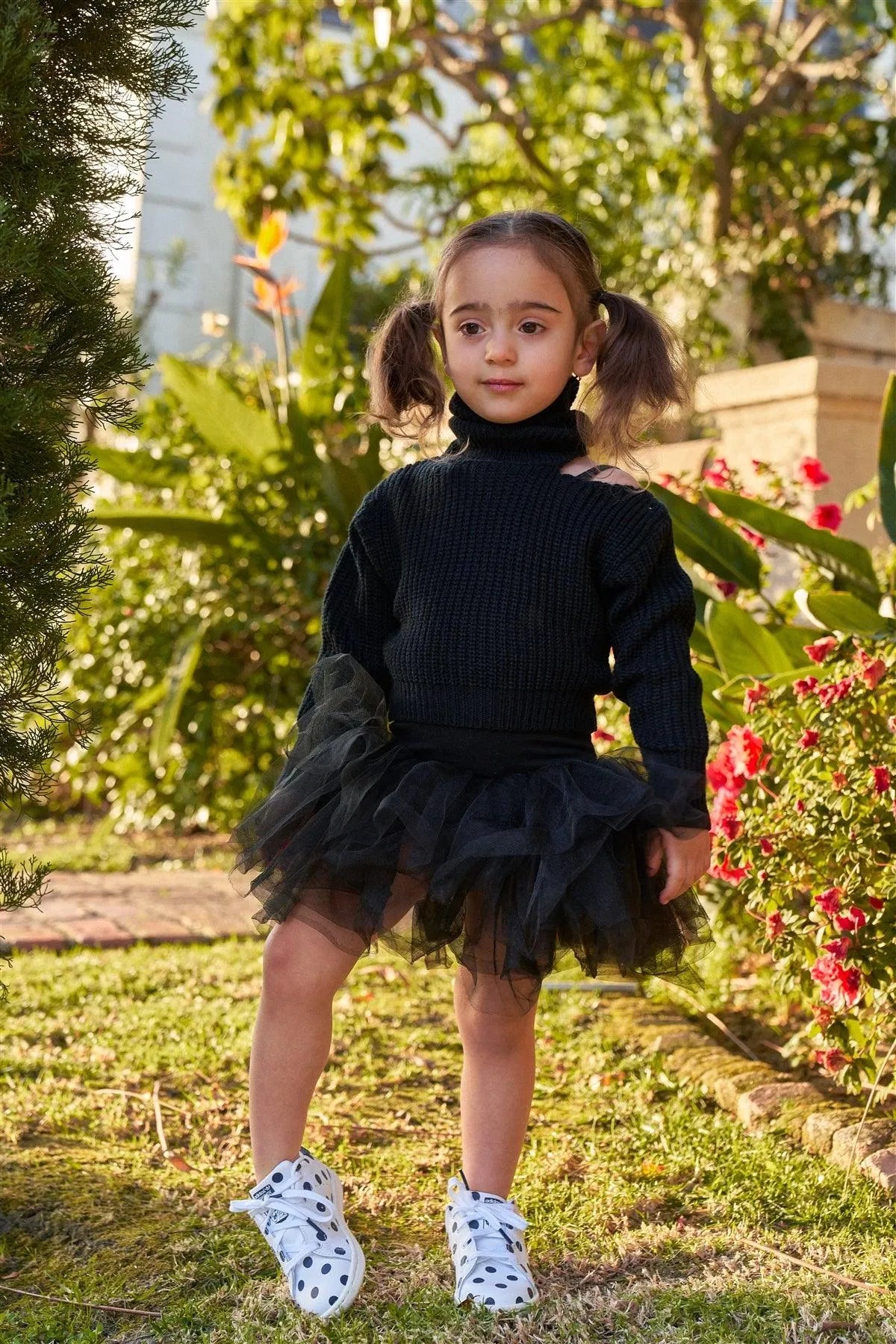 🖤 Get ready for the cutest sweater in town! Our little girls' ribbed knit sweater features a fun cut-out shoulder detail and long balloon-y sleeves, perfect for the fall/winter season. The stretchy, unlined design offers a relaxed fit for both style and comfort. Keep your little one warm and stylish with this must-have turtleneck sweater.
