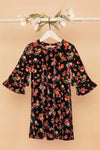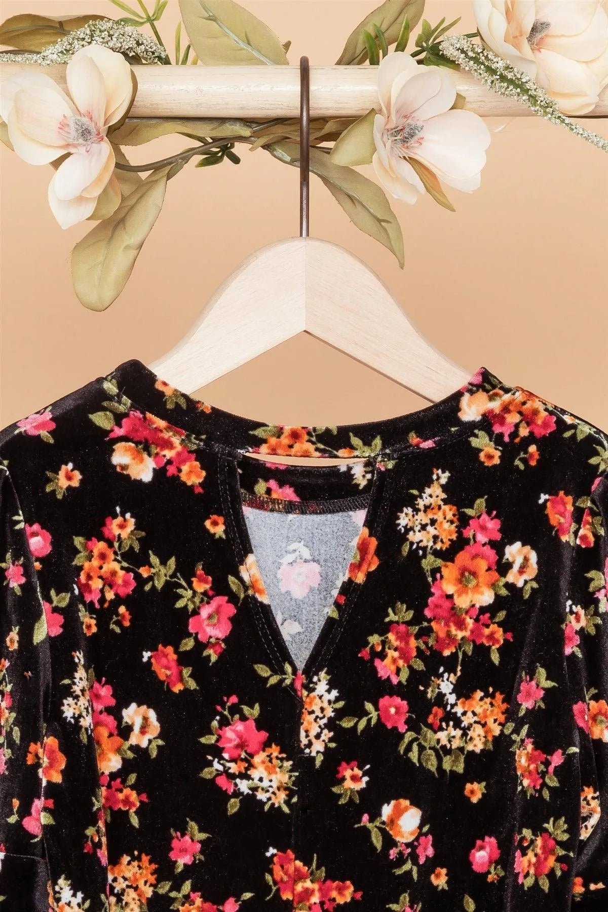 Toddler Girls Black Velvet Floral Ruffle Sleeves Dress /1-2-2-1