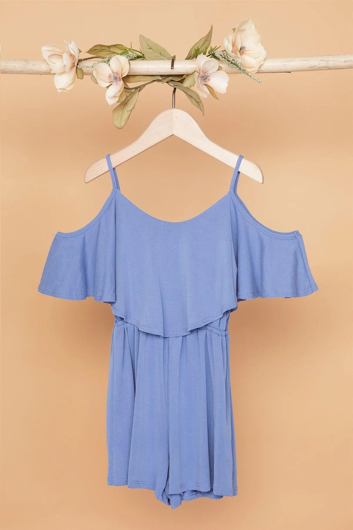 Toddler Girls Blue Cold Shoulder Cami Romper /2-1-1