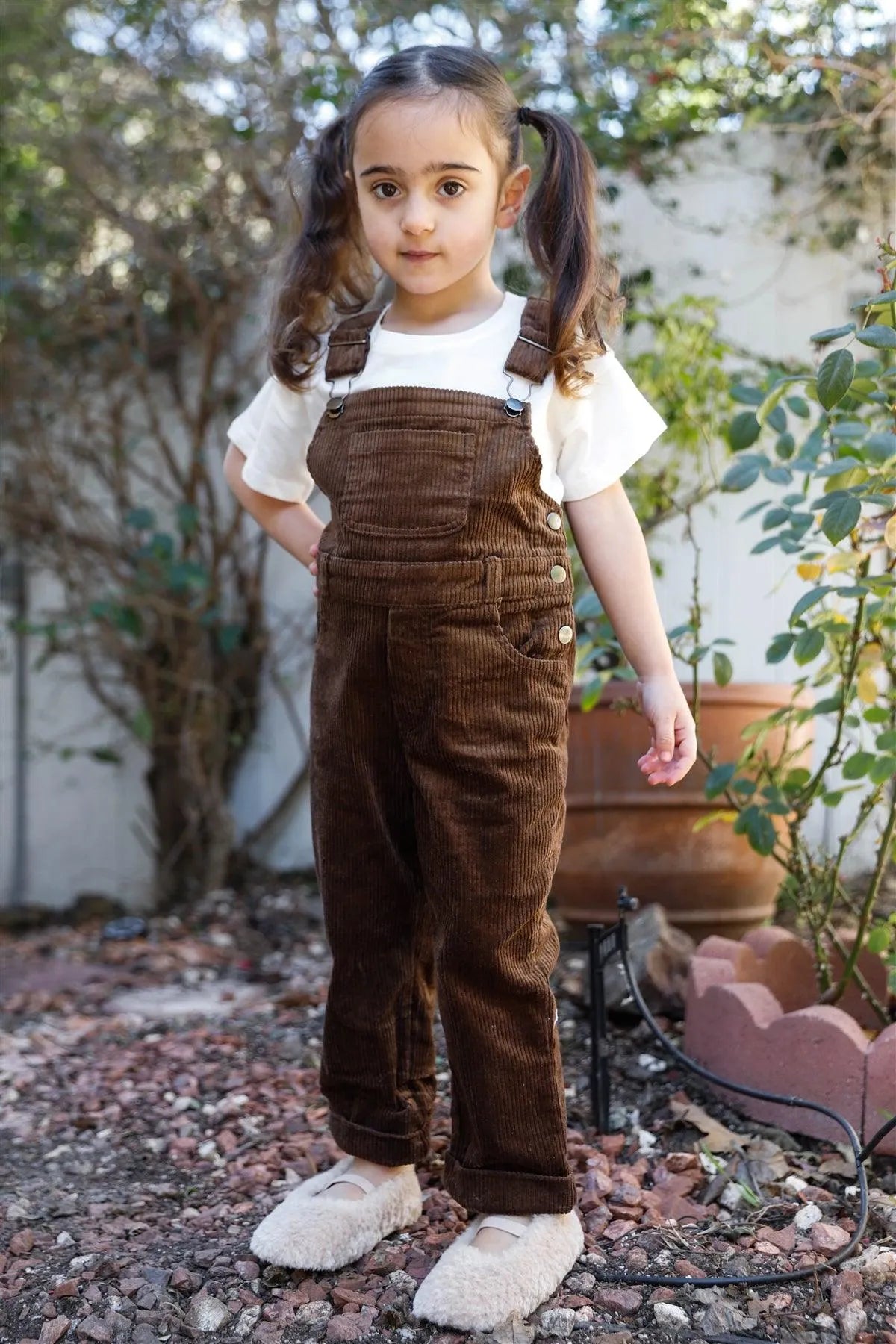 Toddler Girls Dark Brown Cotton Velvet Overall /1-2-2-1