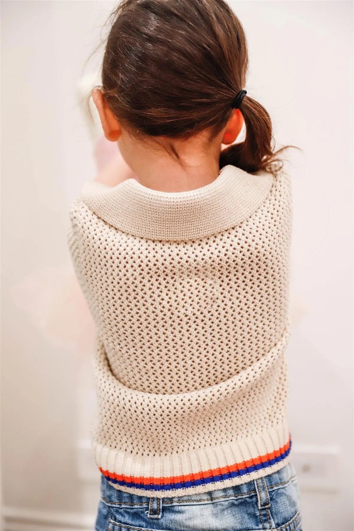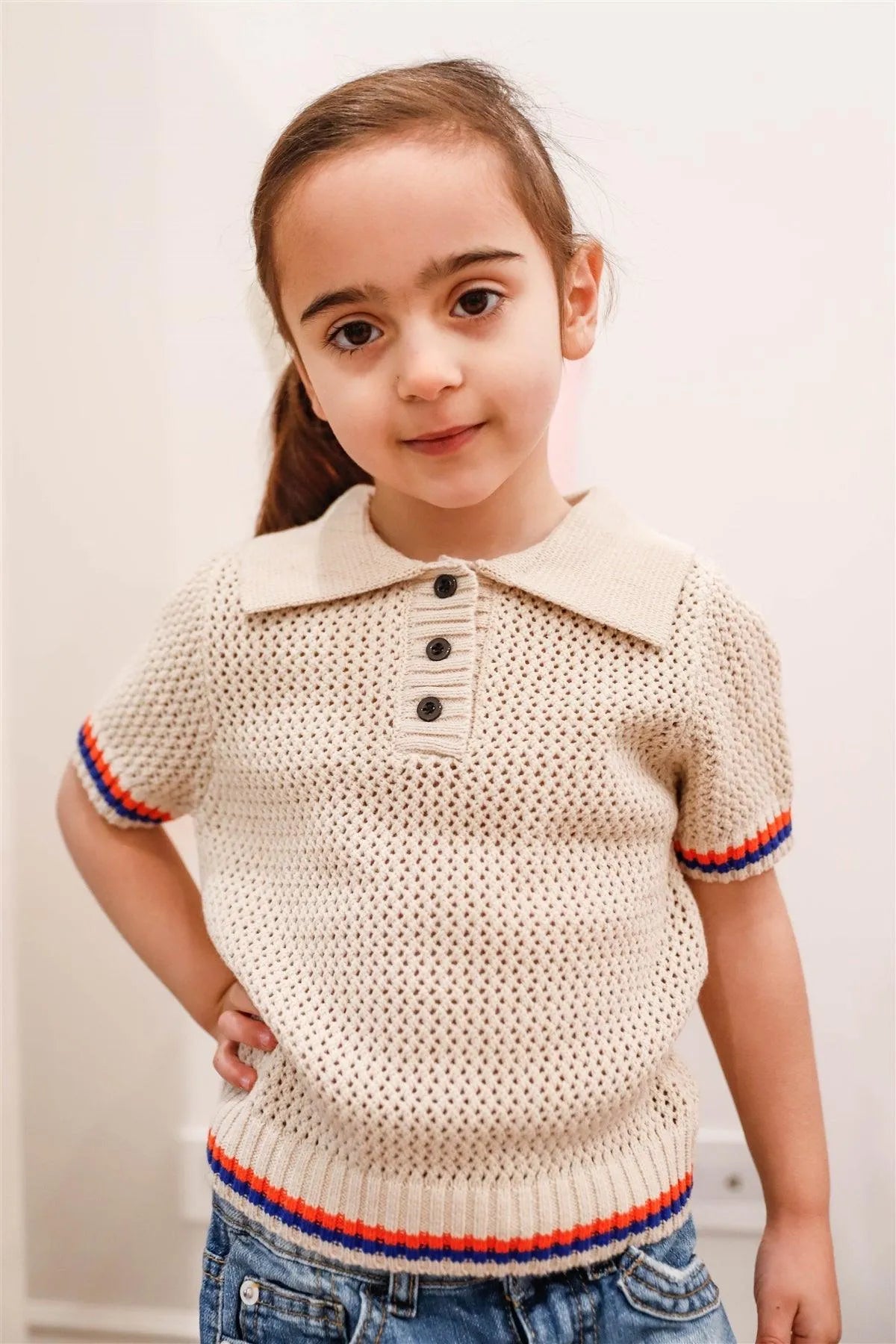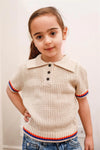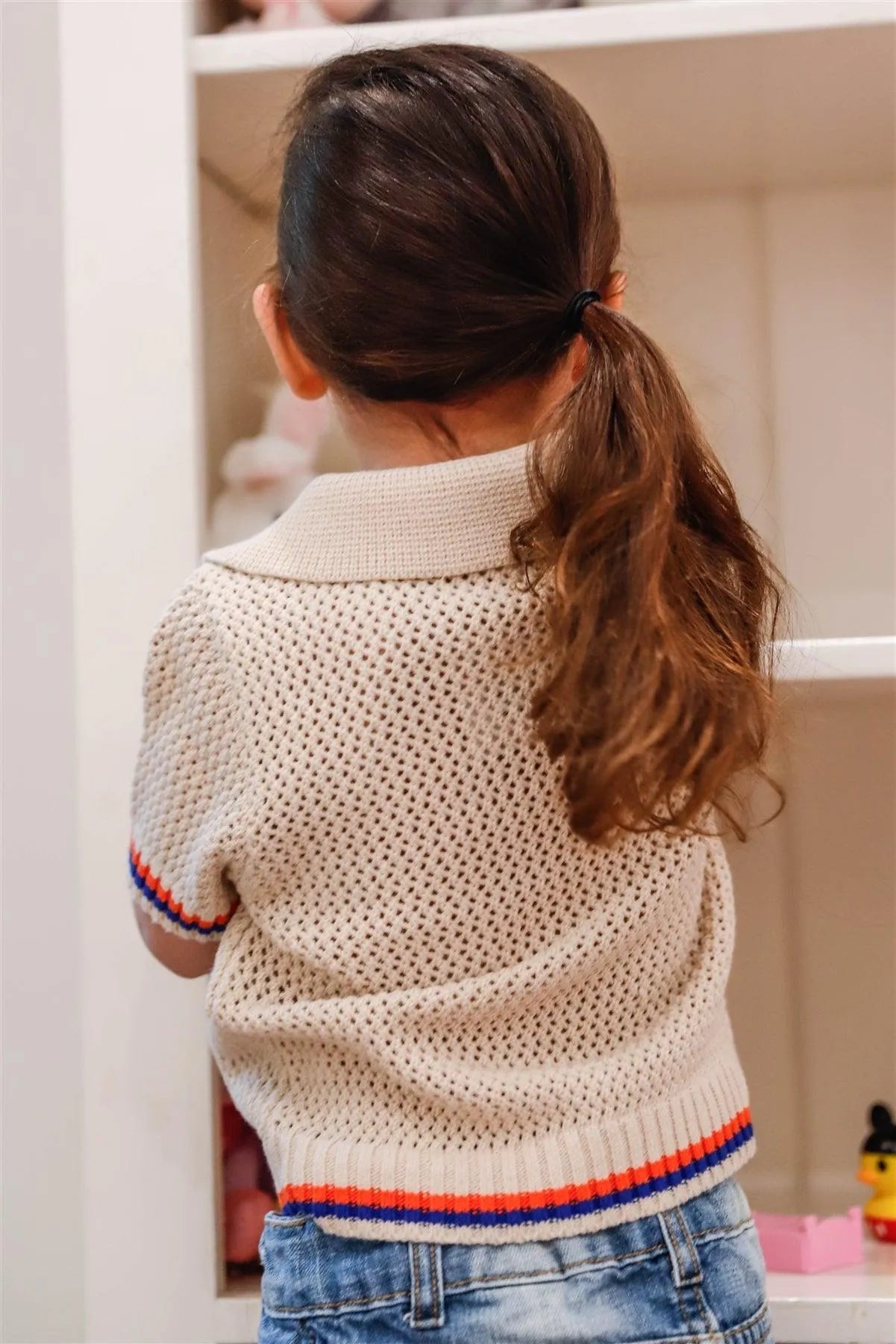 Toddler Girls Ecru Crochet Stripe Details Polo Top /1-3-2