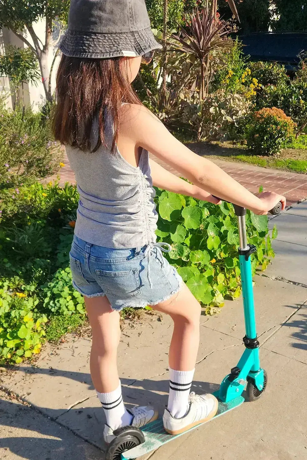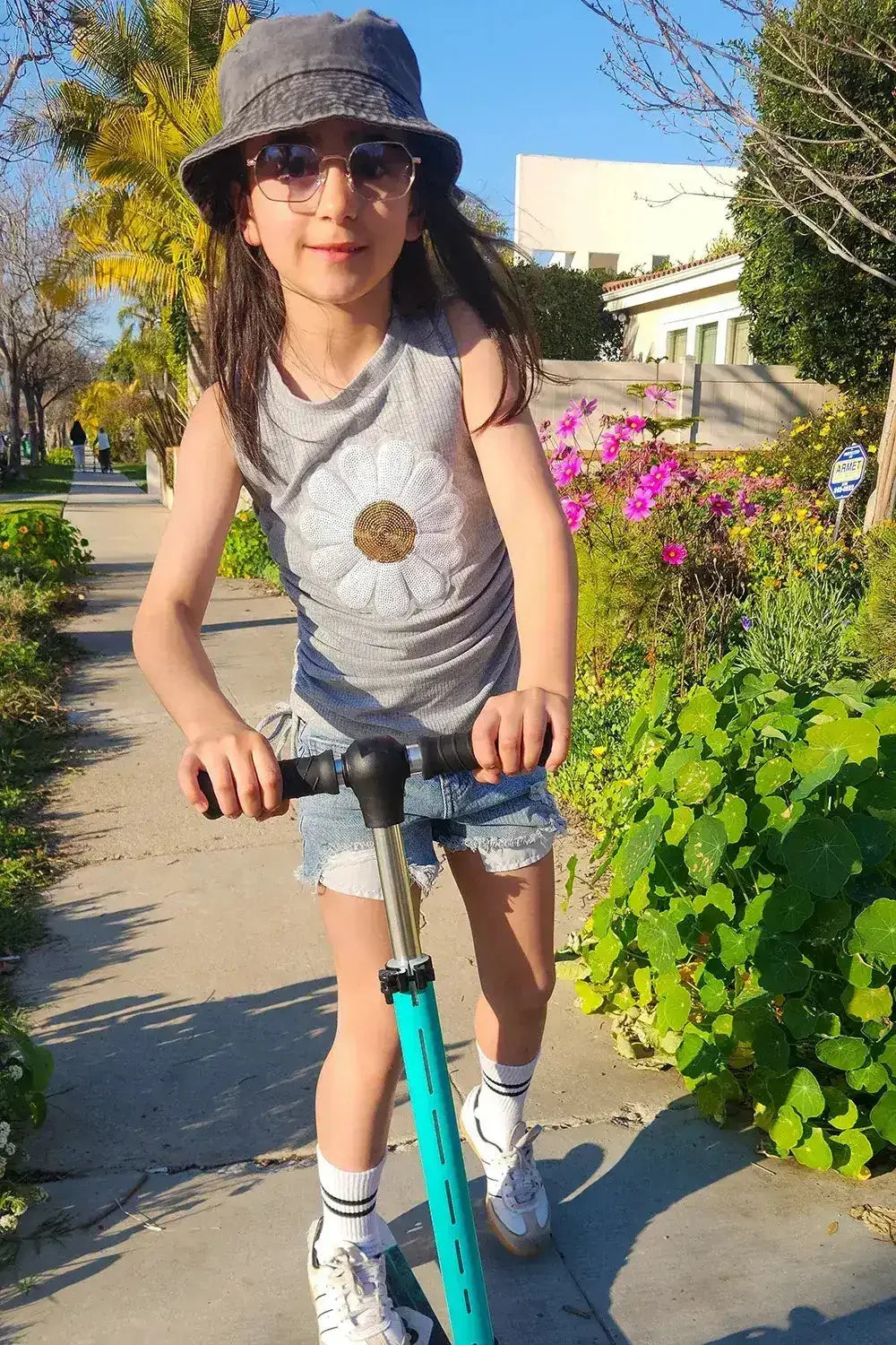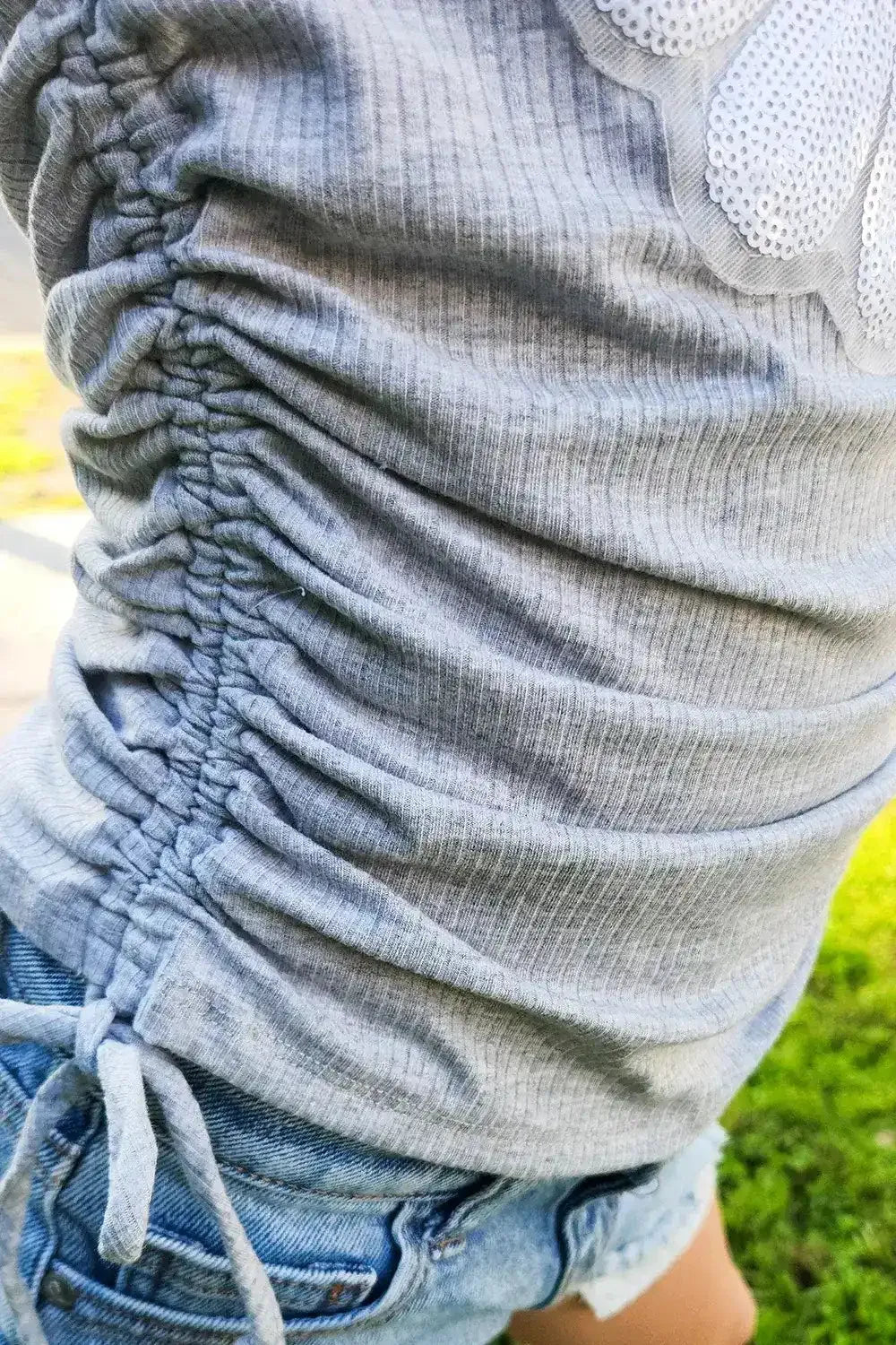 Indulge in luxury with our Girls Ribbed Sequin Flower Side Gathering Sleeveless Top. With delicate sequin flowers and elegant side gathering, this top adds sophistication to any outfit. The sleeveless design allows for comfortable and stylish wear, perfect for any occasion. Elevate your child's wardrobe with this exclusive piece.