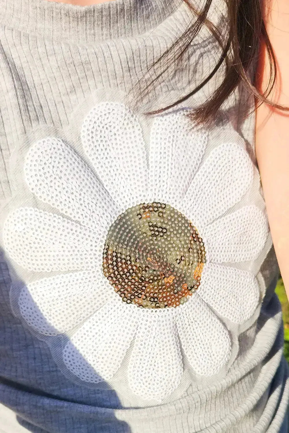 Girls Sequin Flower Ribbed Side Ruched Gathering Sleeveless Tank Top