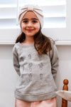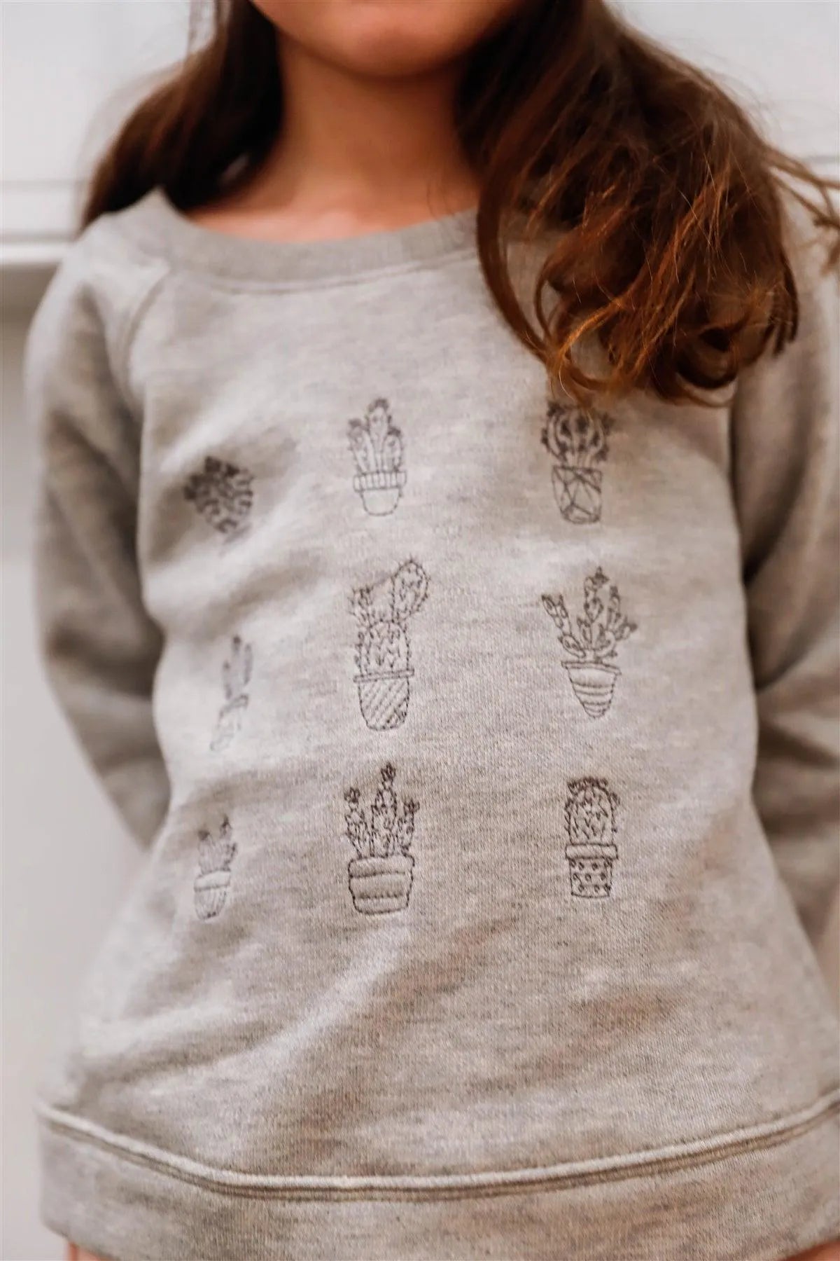 Toddler Girls Grey Cactus Embroidery Long Sleeve Sweater /1-2-2-1