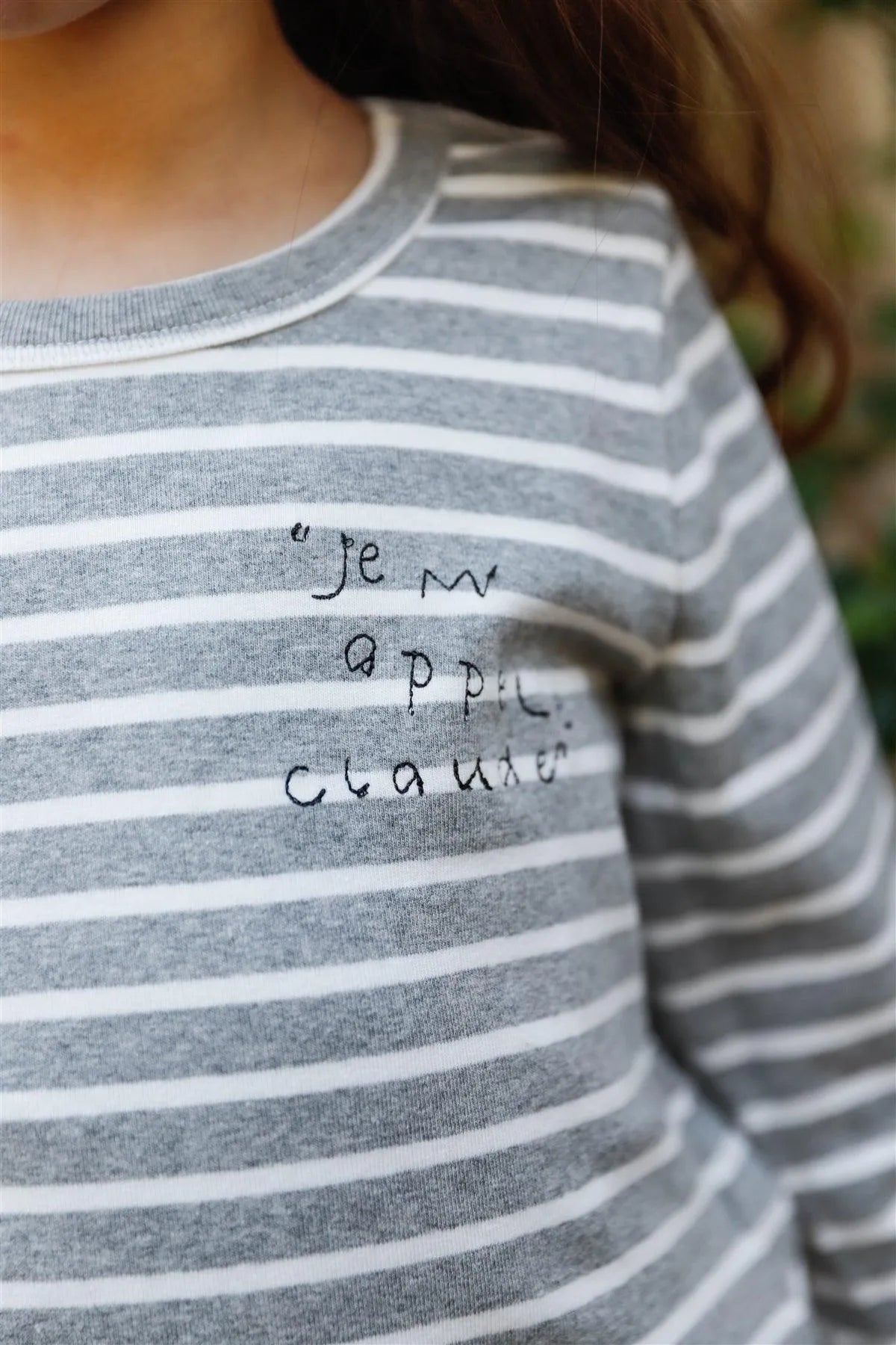 🖤 Item features: Grey, striped, cotton material, front side print embroidered detail, long cuffed sleeves, crew neckline, not see through, non-stretchy, unlined, casual, basic, cute, must have