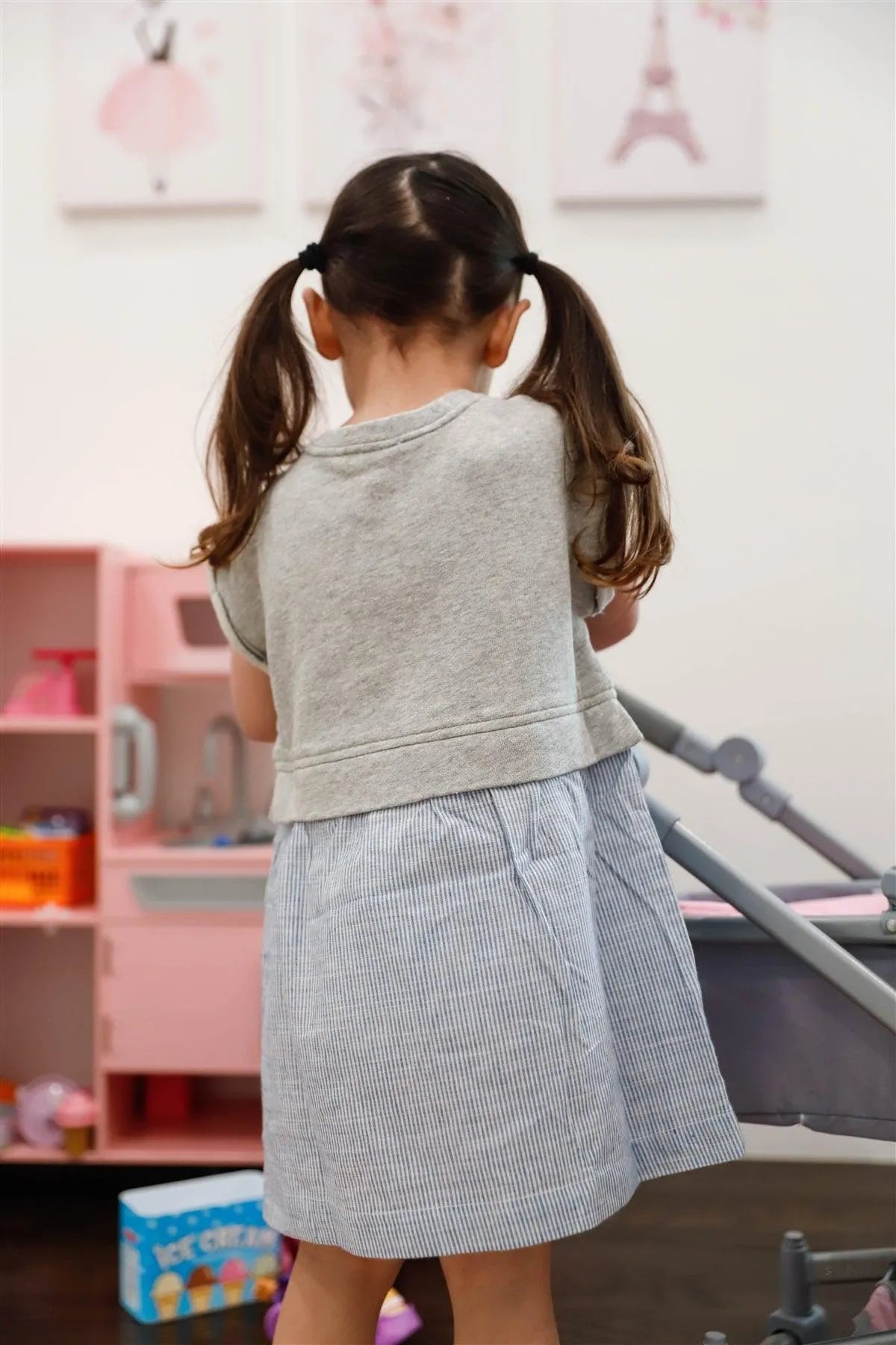 Toddler Girls Heather Grey Cotton & Linen Blend Top & Stripe Hem Dress /2-1-2