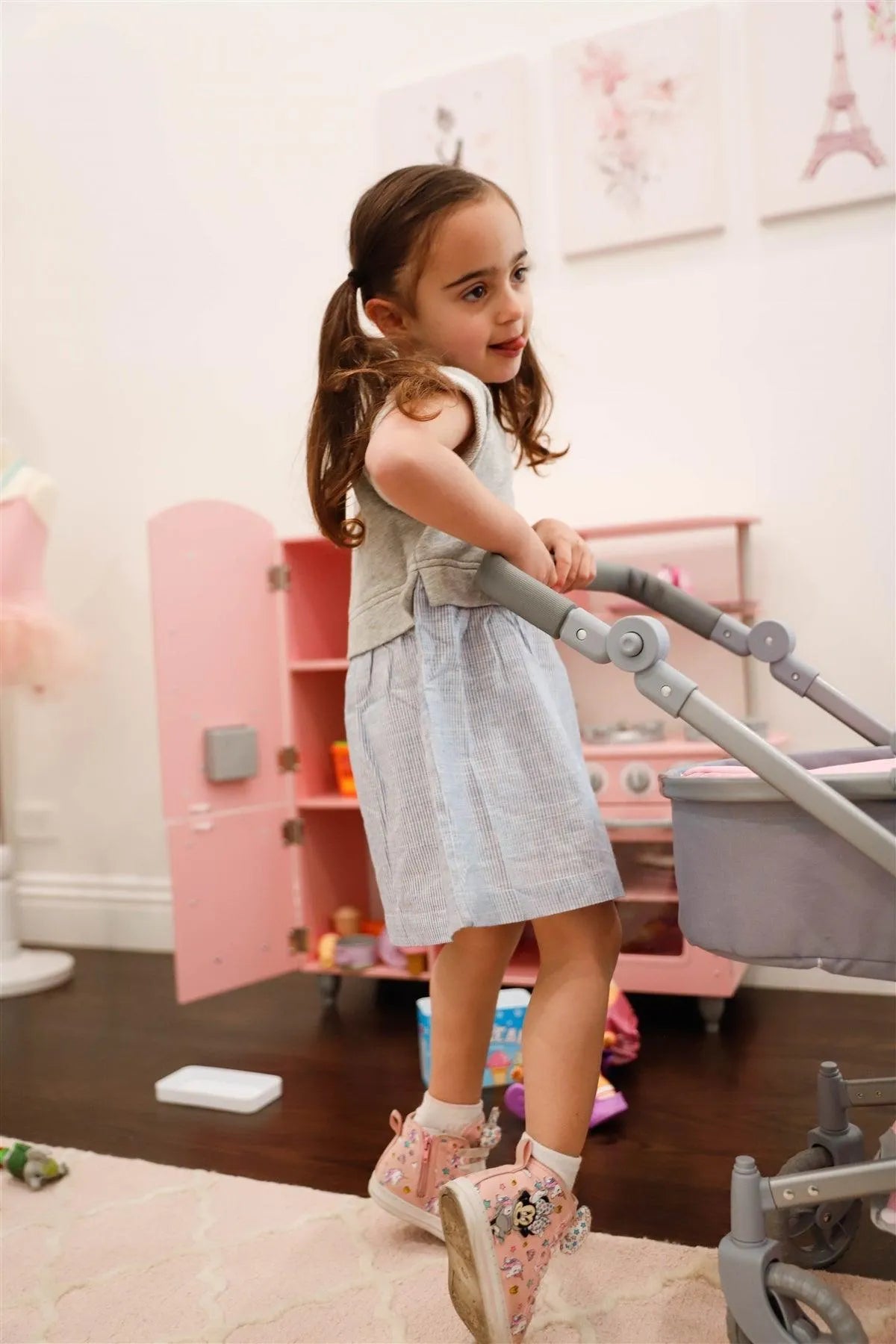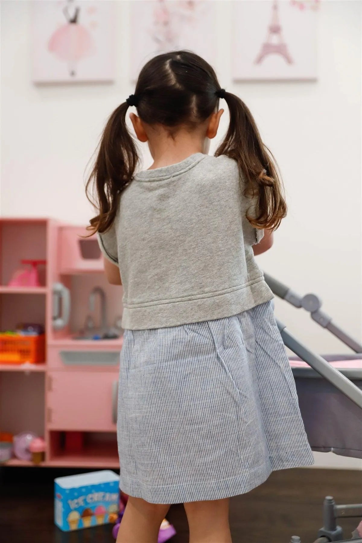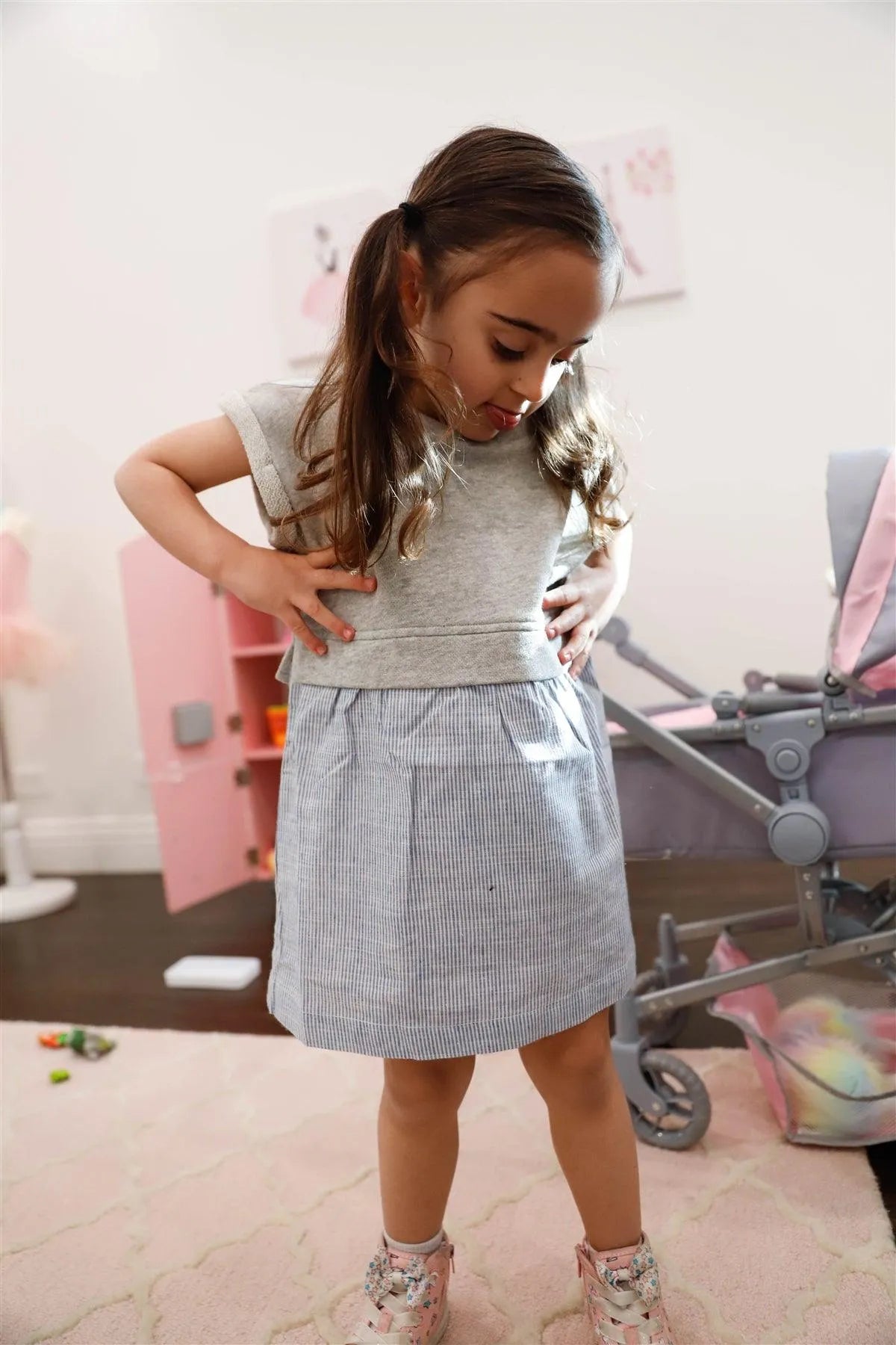 Toddler Girls Heather Grey Cotton & Linen Blend Top & Stripe Hem Dress /2-2-2