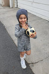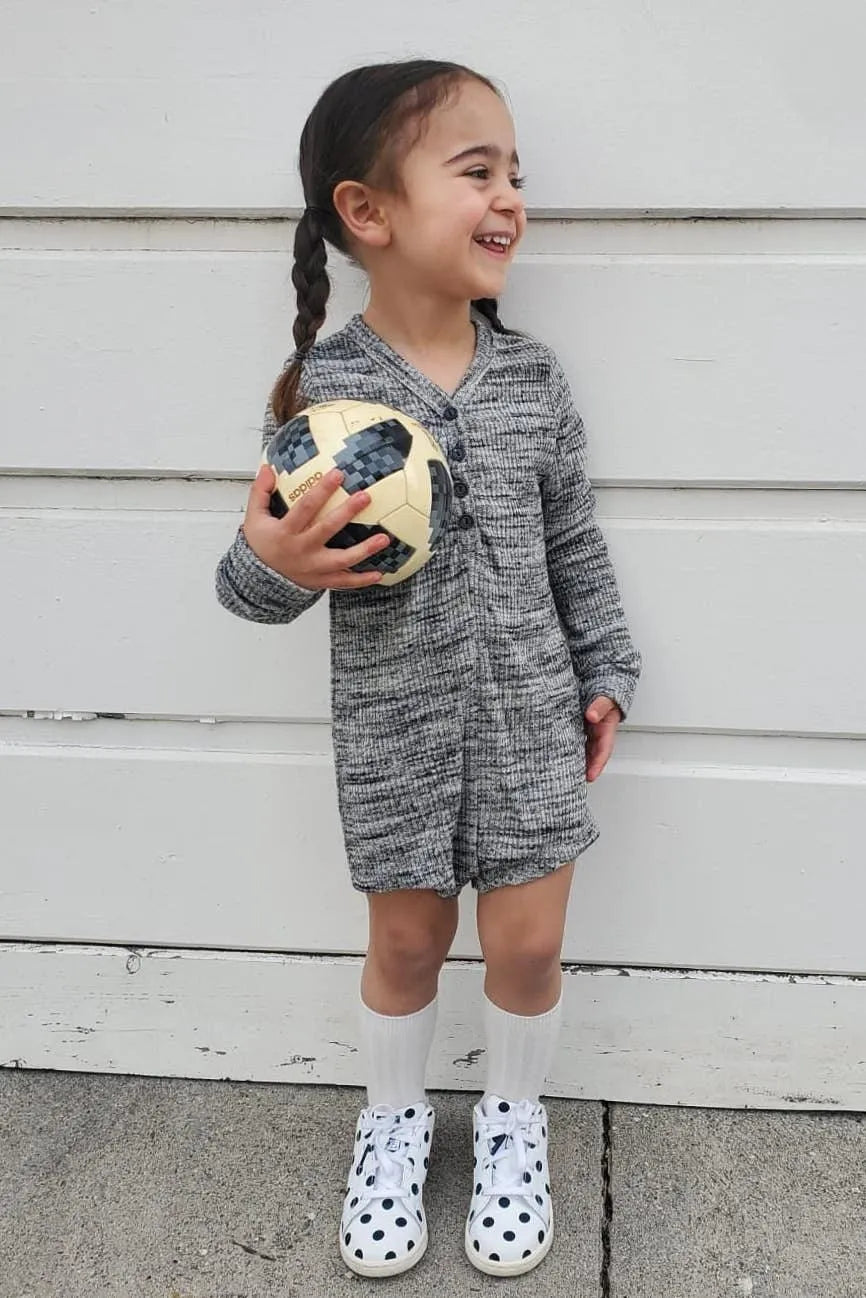 Girls Heather Grey Long Sleeve V-Neck Front Button Down Romper /1-2-1-1-1