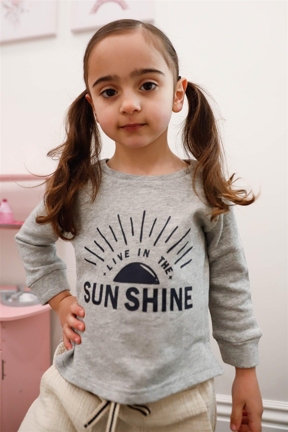 Toddler Girls Heather Grey "Sunshine" Print Long Sleeve Top /1-1-1-2