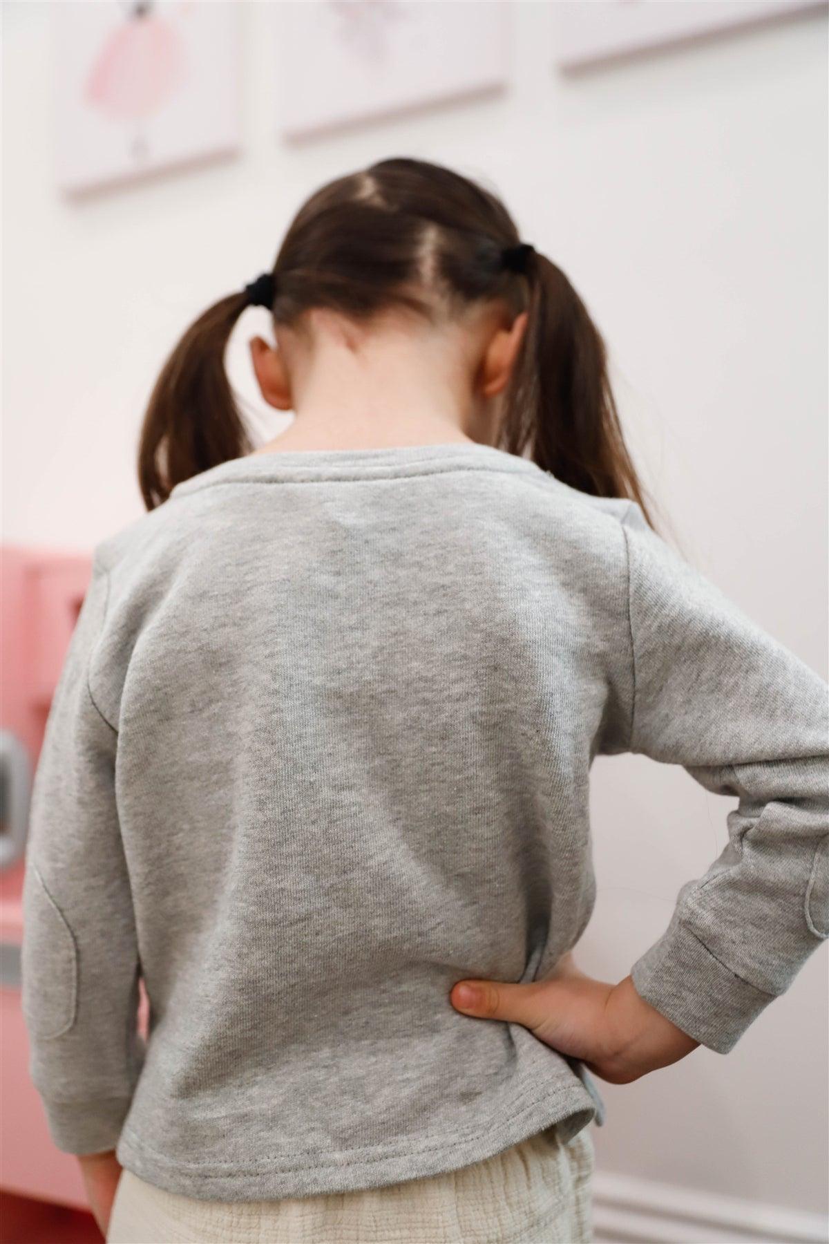 🖤 Item Features: Heather grey, cotton material, front "Sunshine" print, long cuffed sleeves, elbow patches, crew neckline, side slits, unlined, non-sheer, non-stretchy, stylish, cute, girlish, comfy