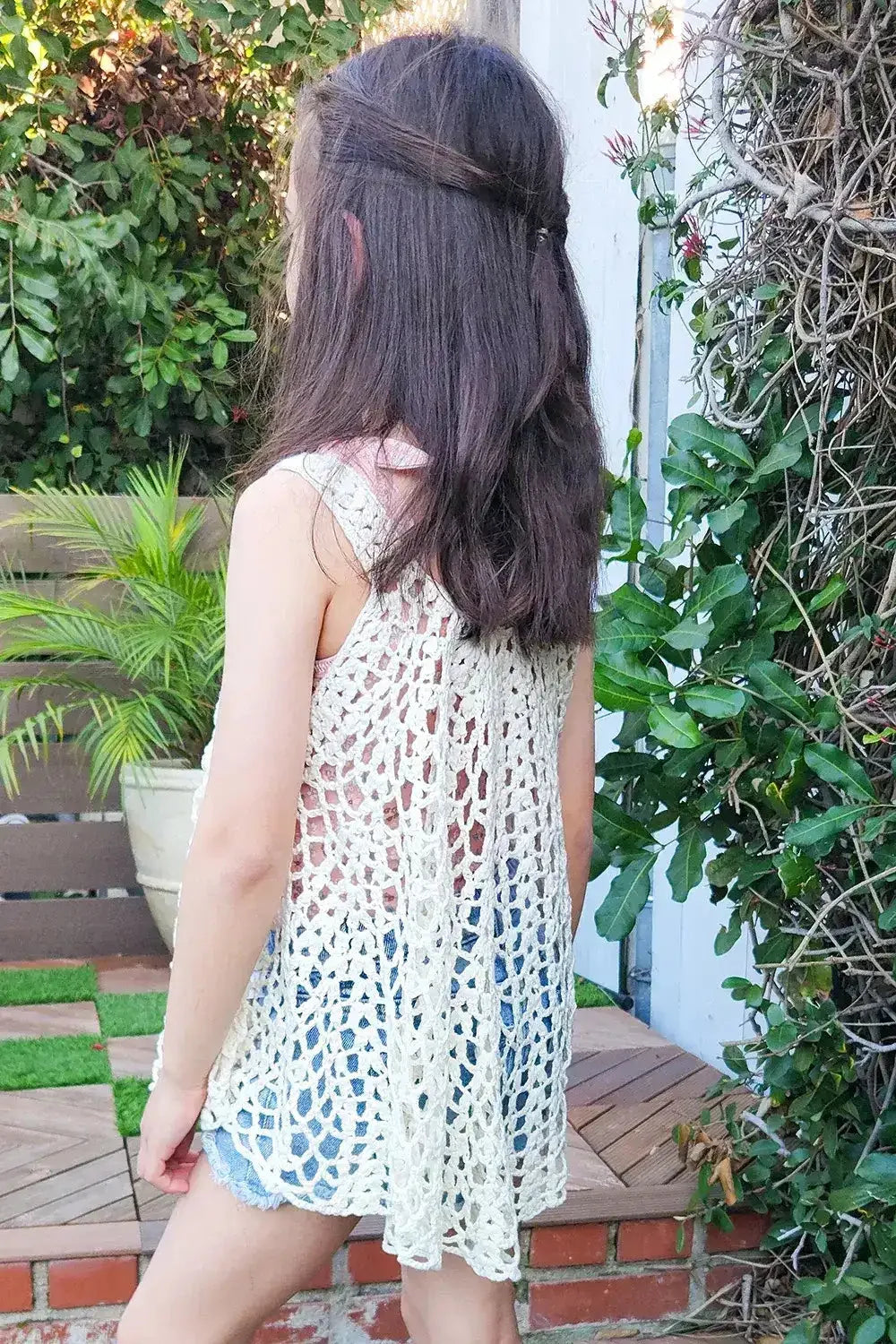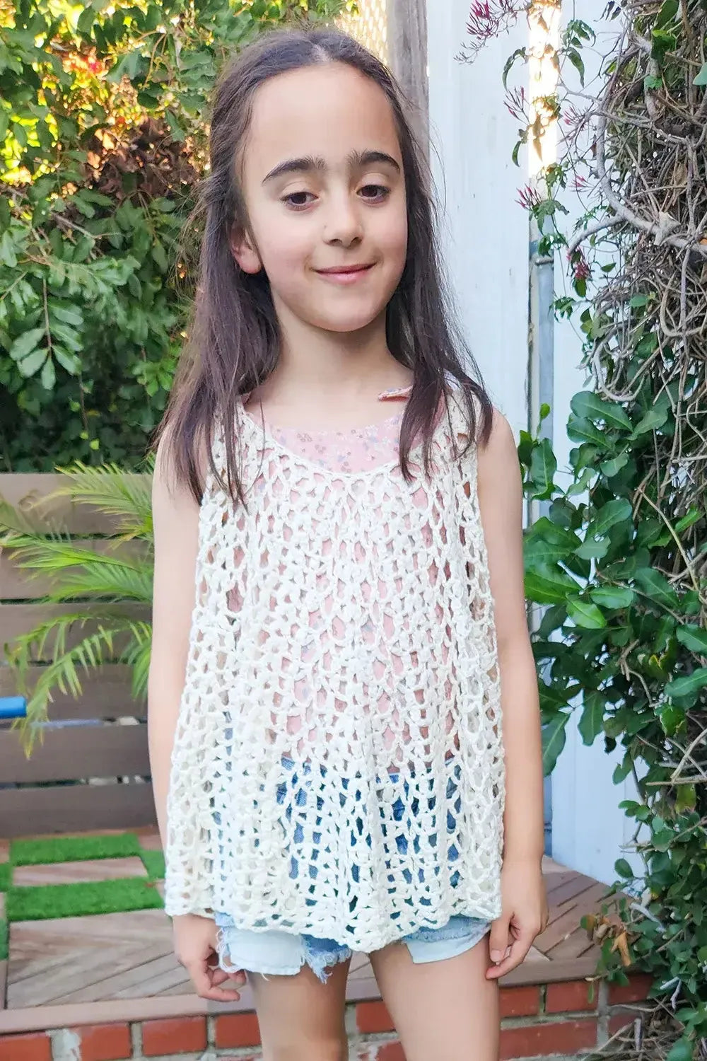 Girls Ivory Sleeveless Flowy Crochet Boho Cover Up Top