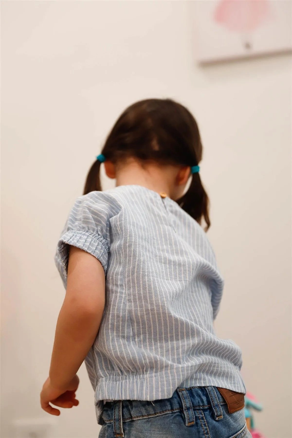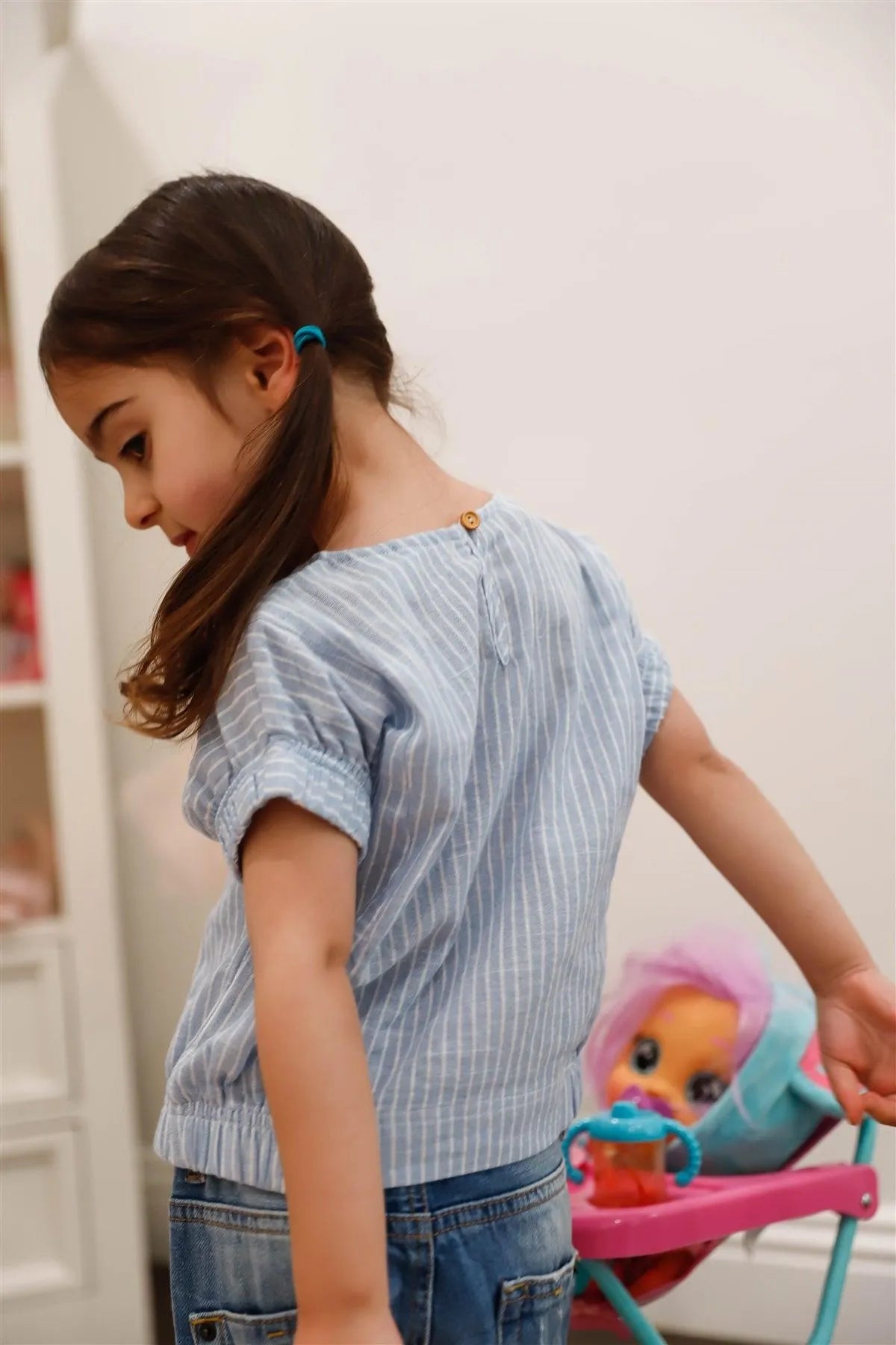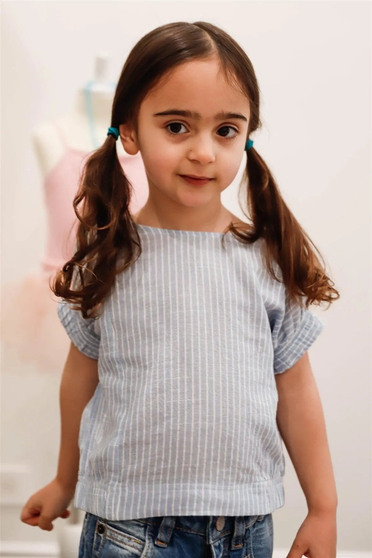 Toddler Girls Light Blue Striped Short Sleeve Top /2-1-3