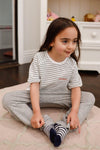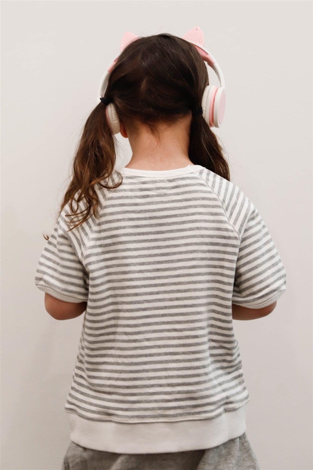 Toddler Girls "Merci" Grey Cotton Stripe Short Sleeve Top /2-2-3
