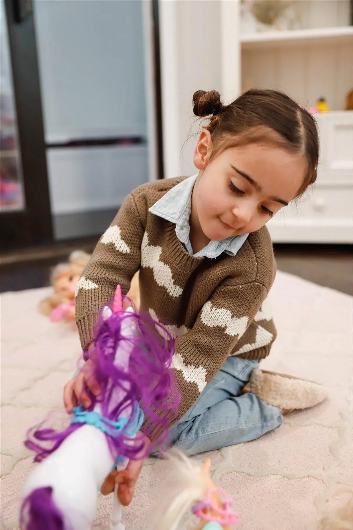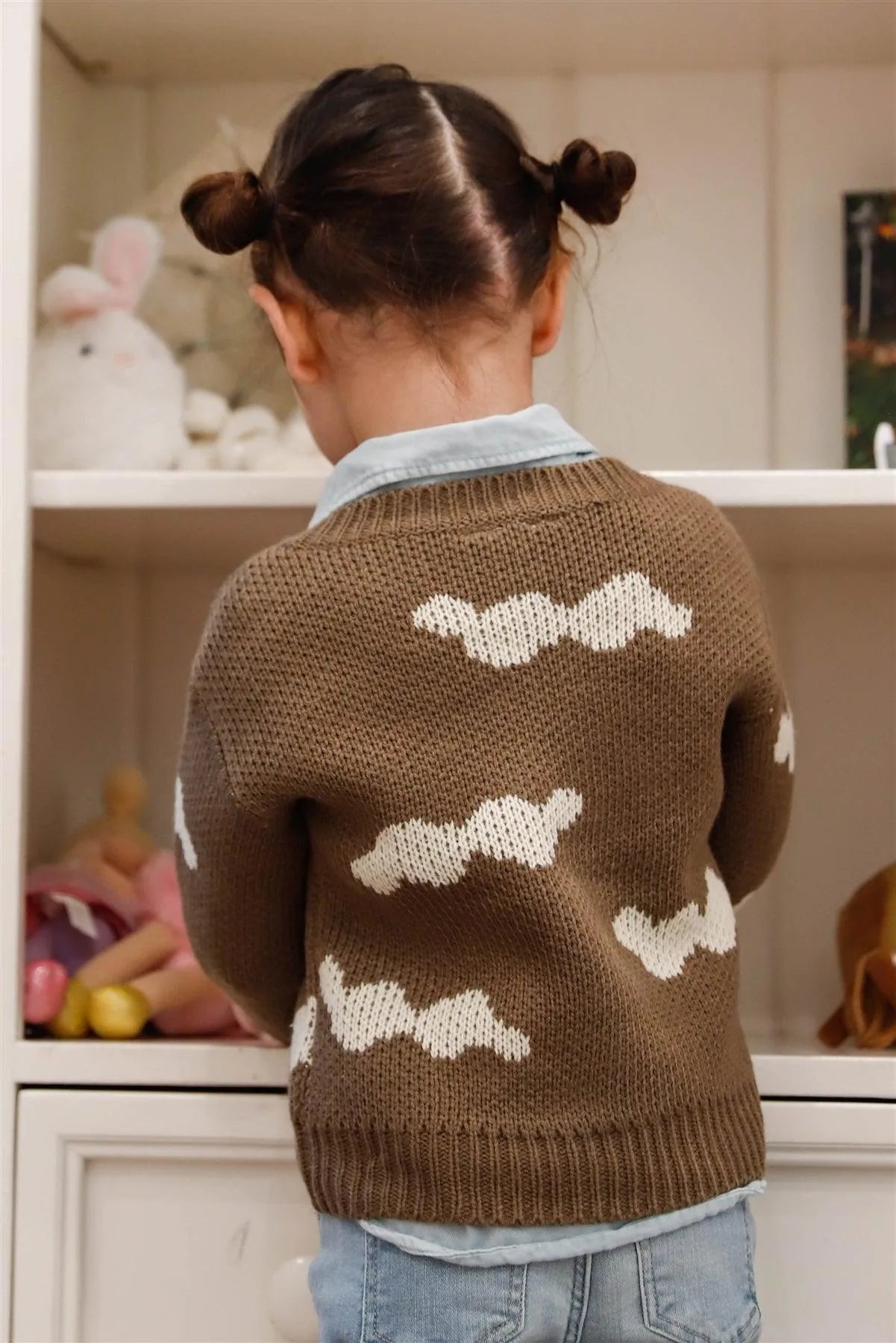 Toddler Girls Mocha Knit Cloud Print Sweater /2-1-2
