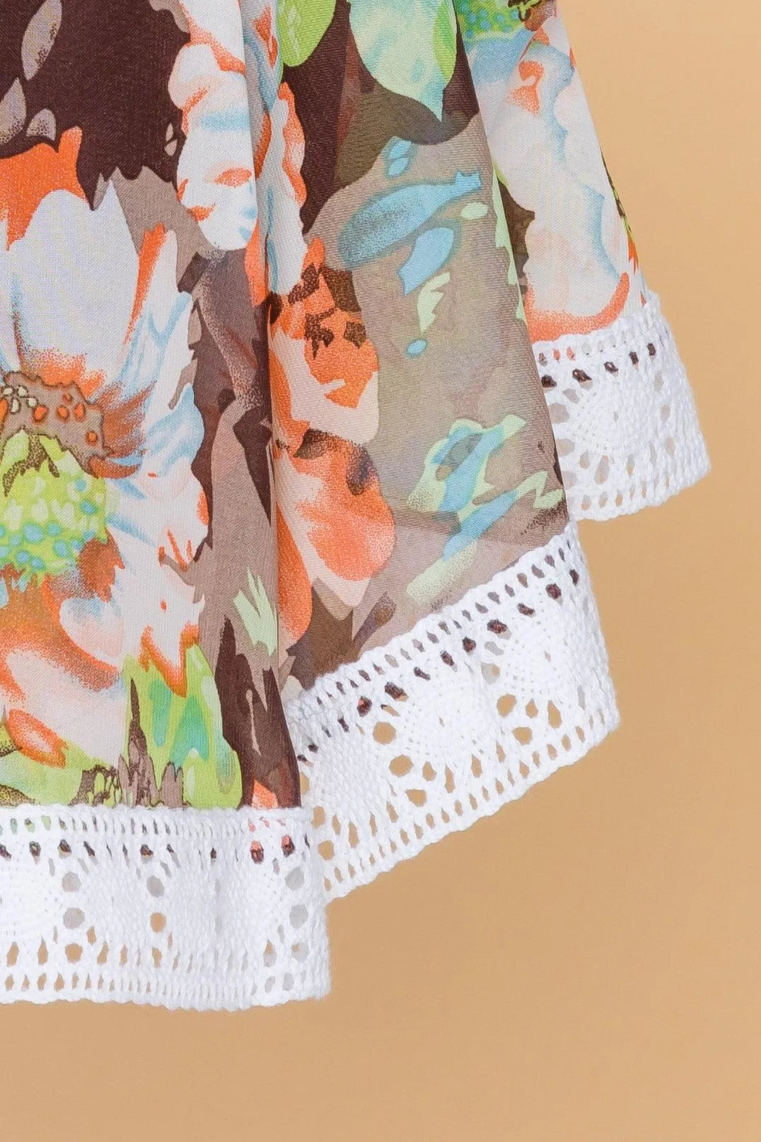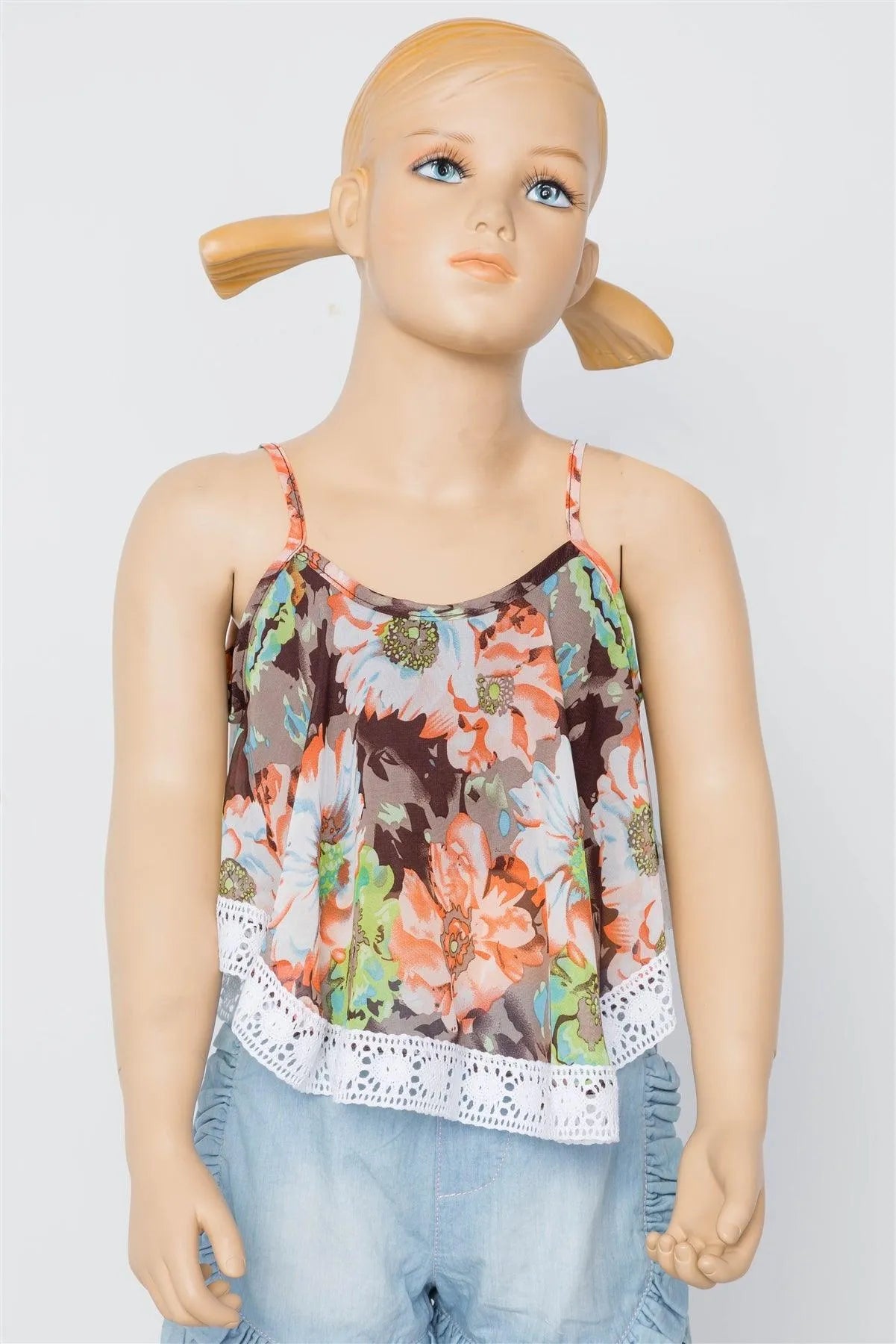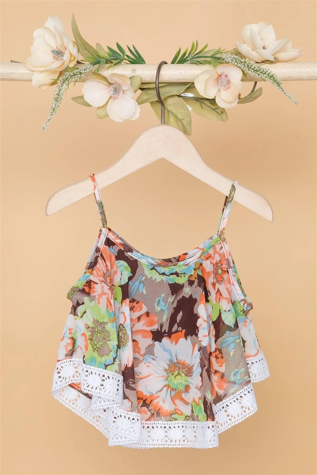 Toddler Girls Multi Brown Floral Print Cami Top / 2-1-3-2